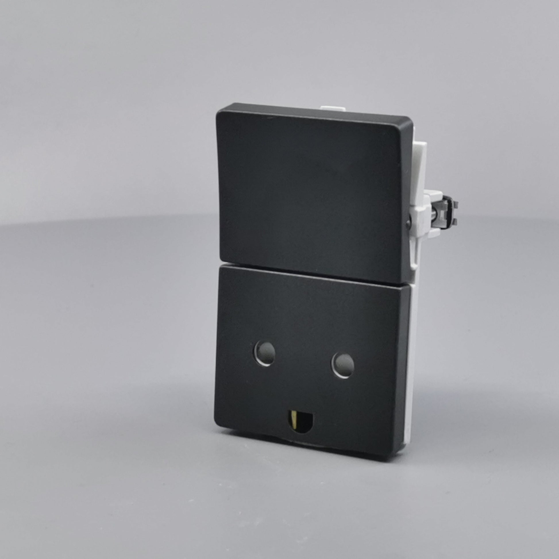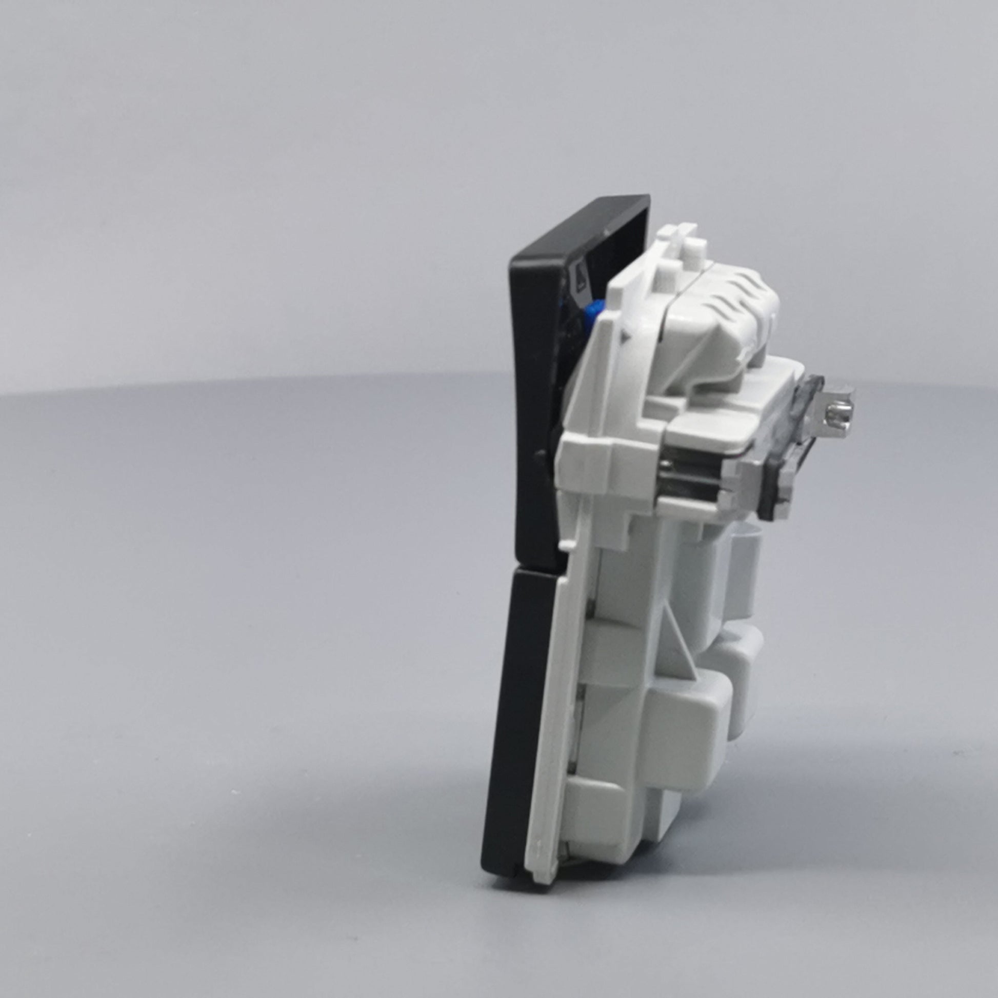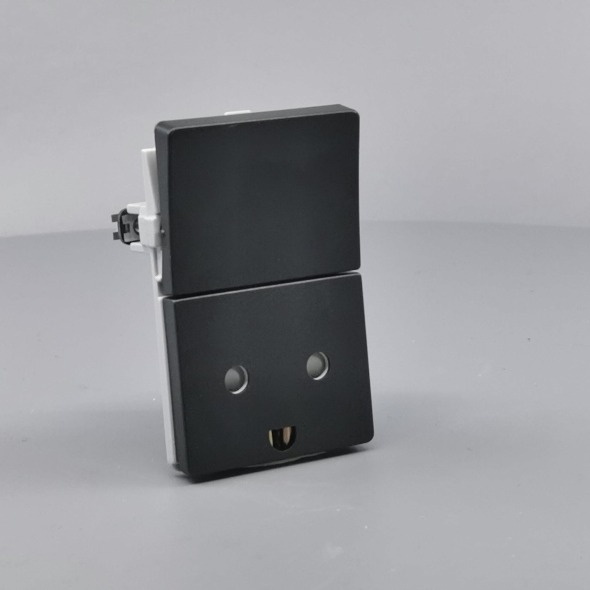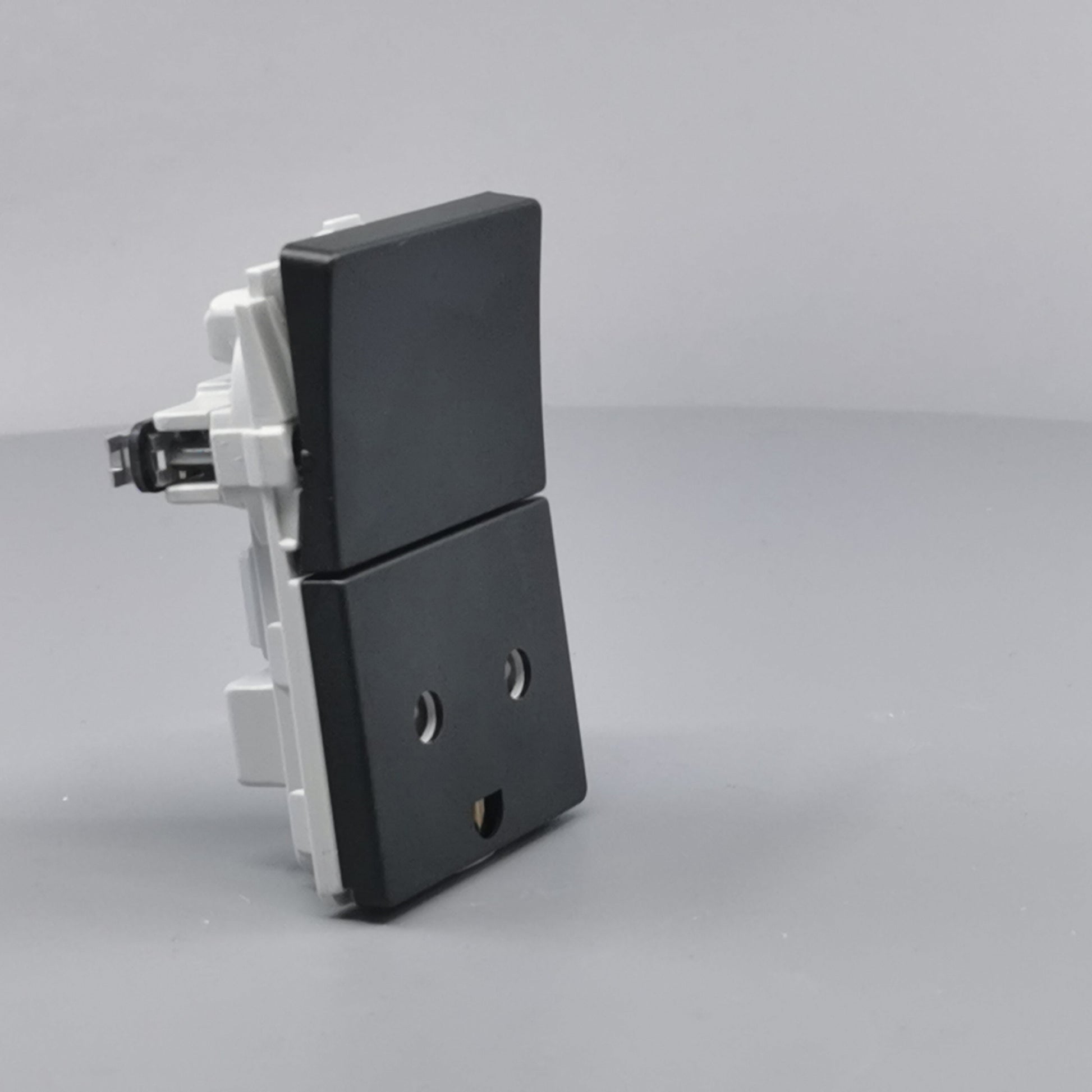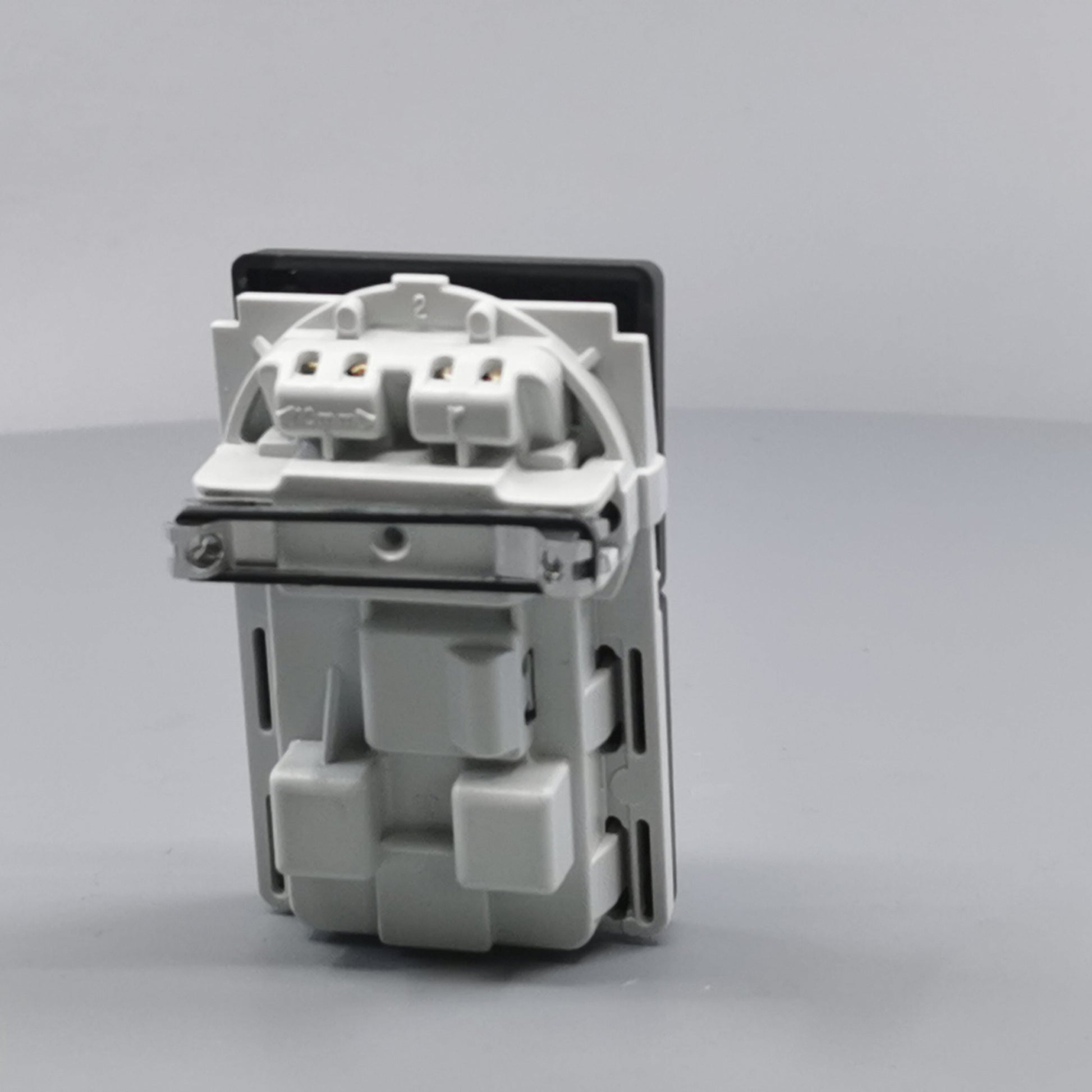 Er konstrueret med pillesikring. Stikkontakt med afbryder og lampe opbygges af indsats for stikkontakt samt tangent/afdækning med lampe. Indsatsen har skrueløse klemmer for 2 stk. 1,5- eller 2 stk. 2,5 mm² stiv ledning pr. klemme (en leder pr. hul).