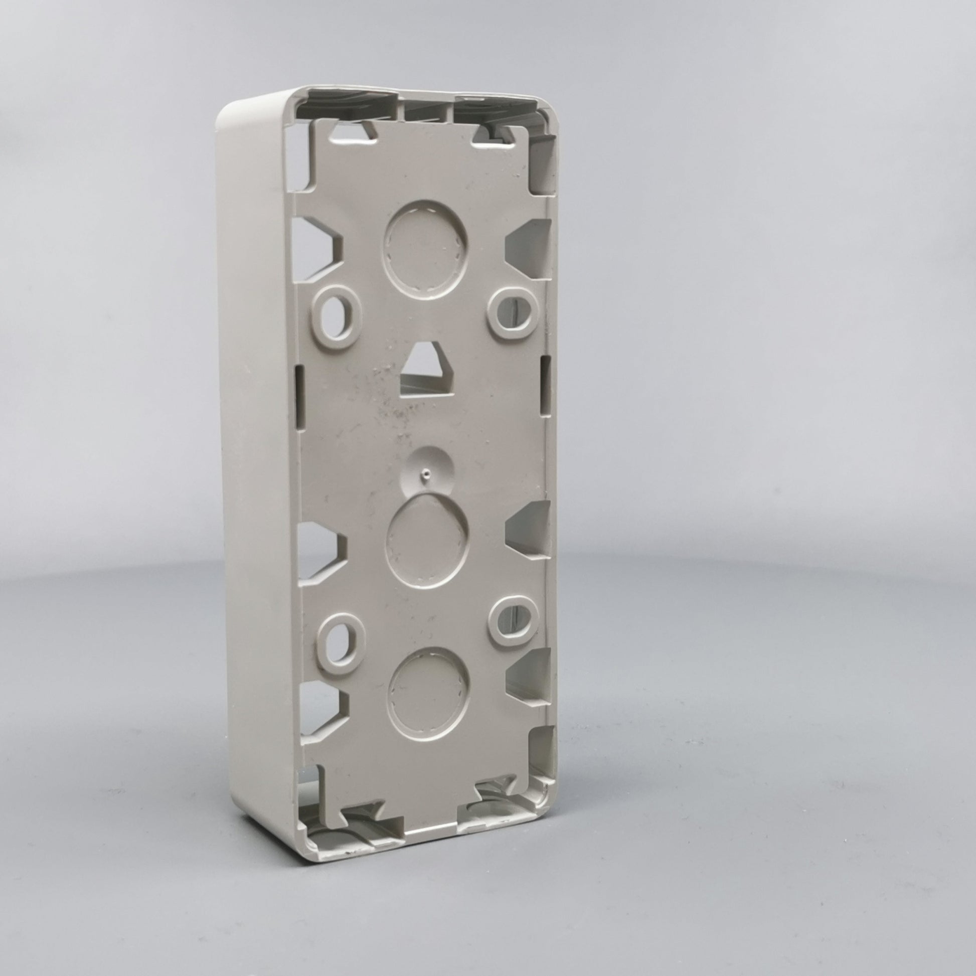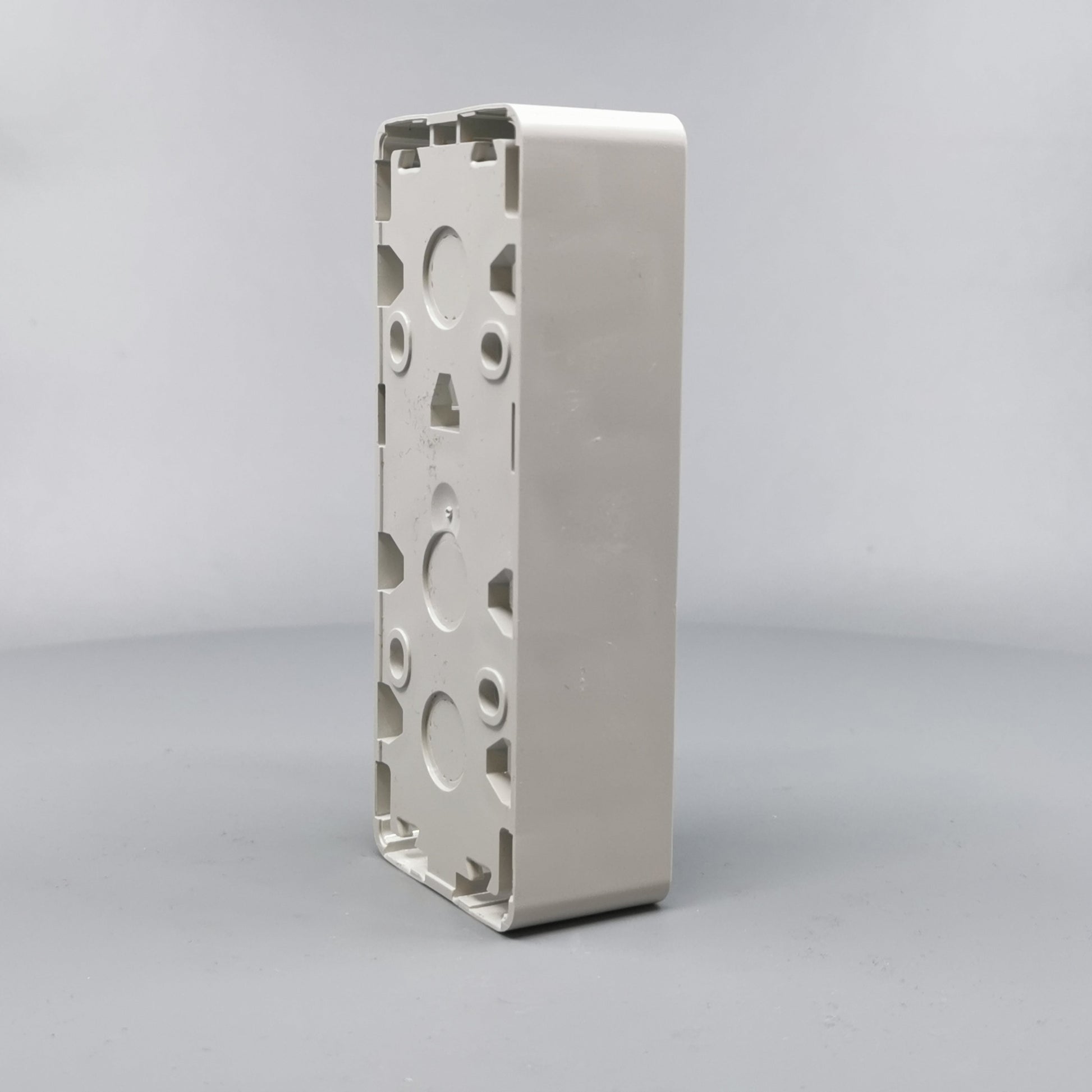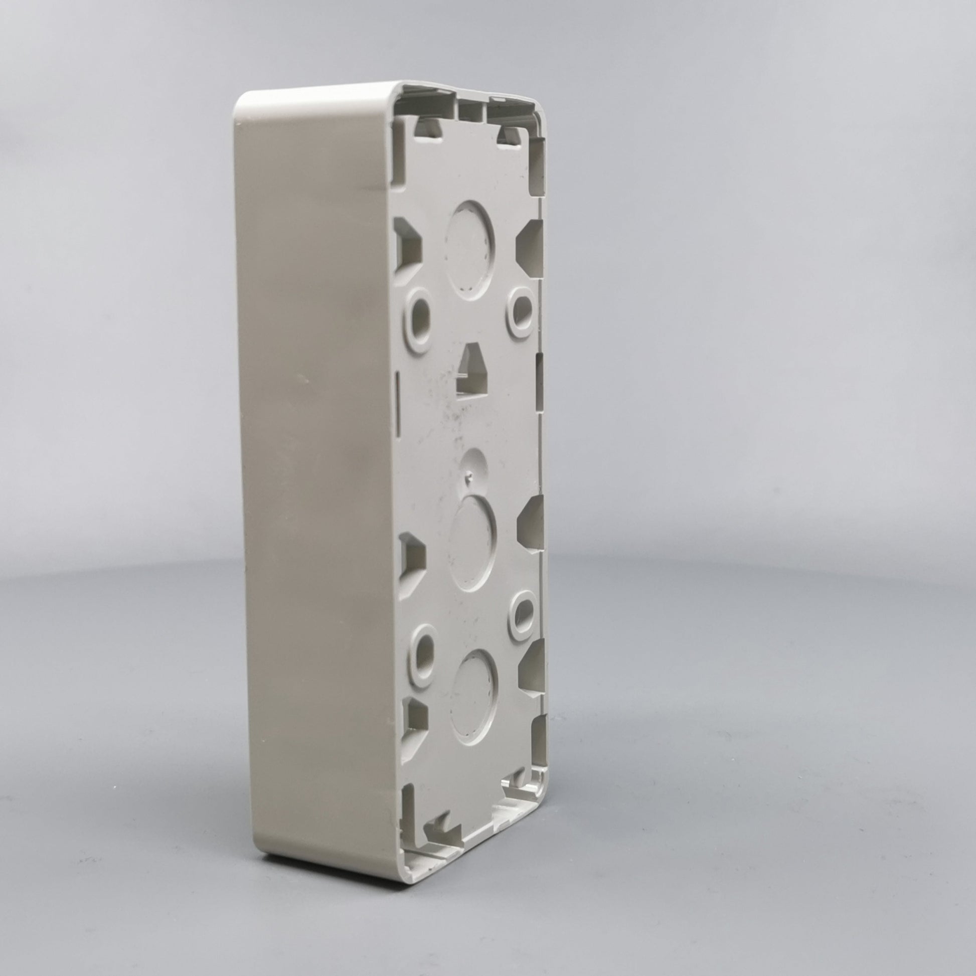 Monteres udvendig på væg. Monteres med ramme FUGA Baseline 50. Kan vendes 180°. Er i siderne forsynet med blanketter for kabel max. Ø11mm og 16 mm rør. 16 mm blanketter kan forsynes med plasttyller til brug ved større... Se mere