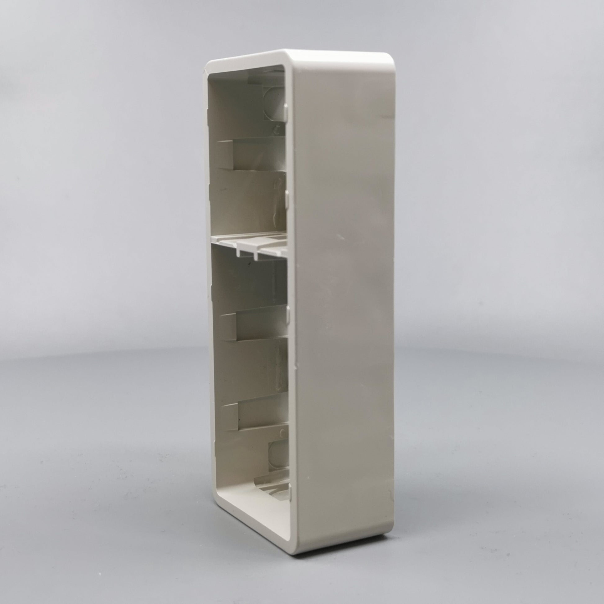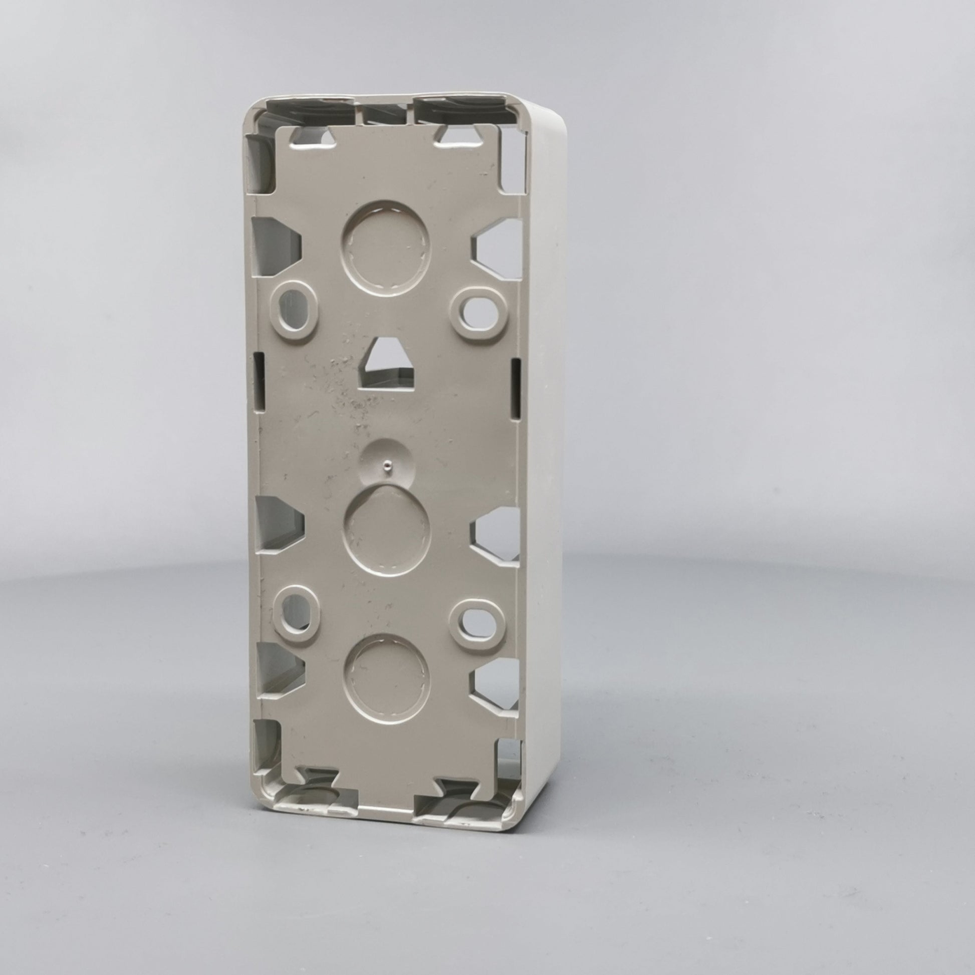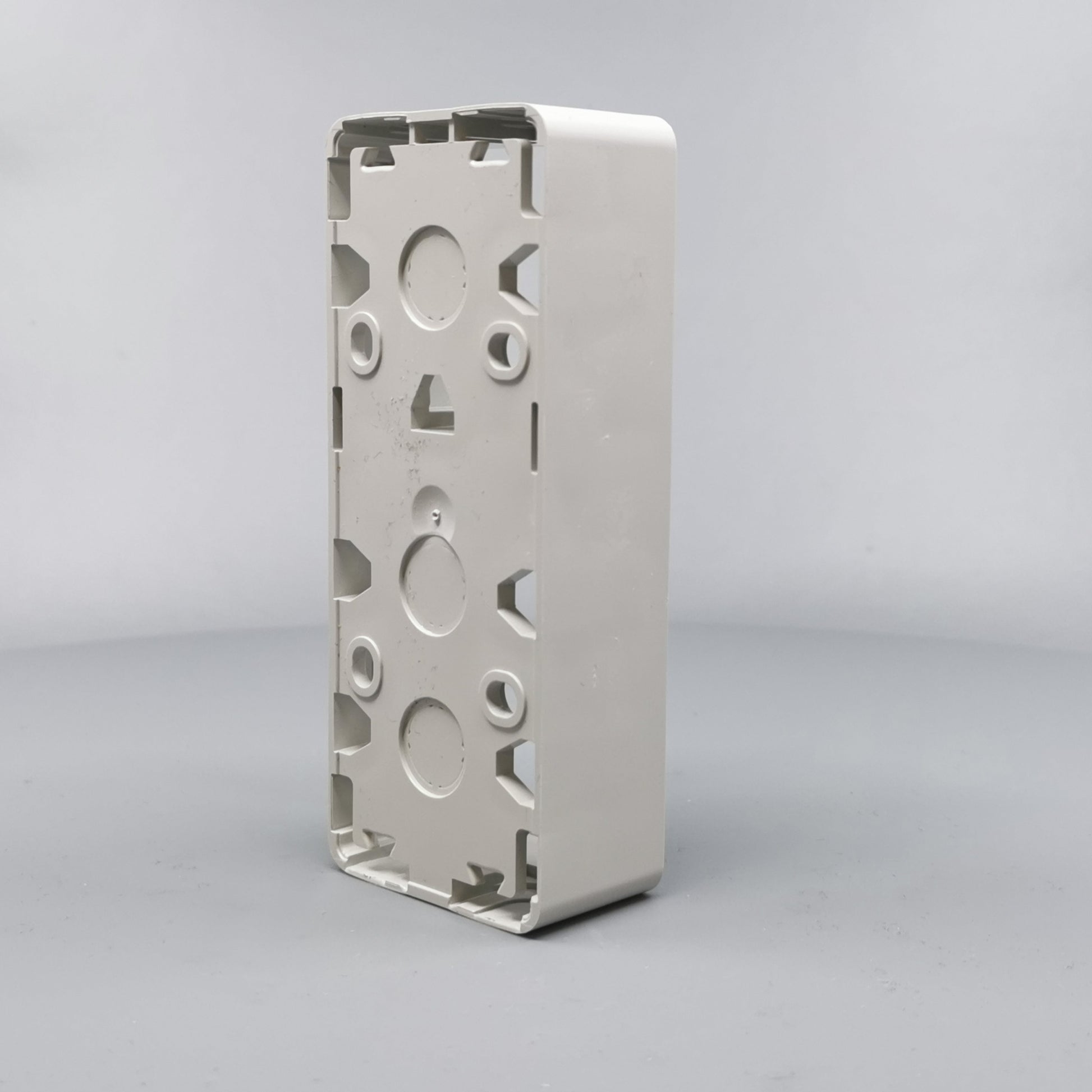 Monteres udvendig på væg. Monteres med ramme FUGA Baseline 50. Kan vendes 180°. Er i siderne forsynet med blanketter for kabel max. Ø11mm og 16 mm rør. 16 mm blanketter kan forsynes med plasttyller til brug ved større... Se mere