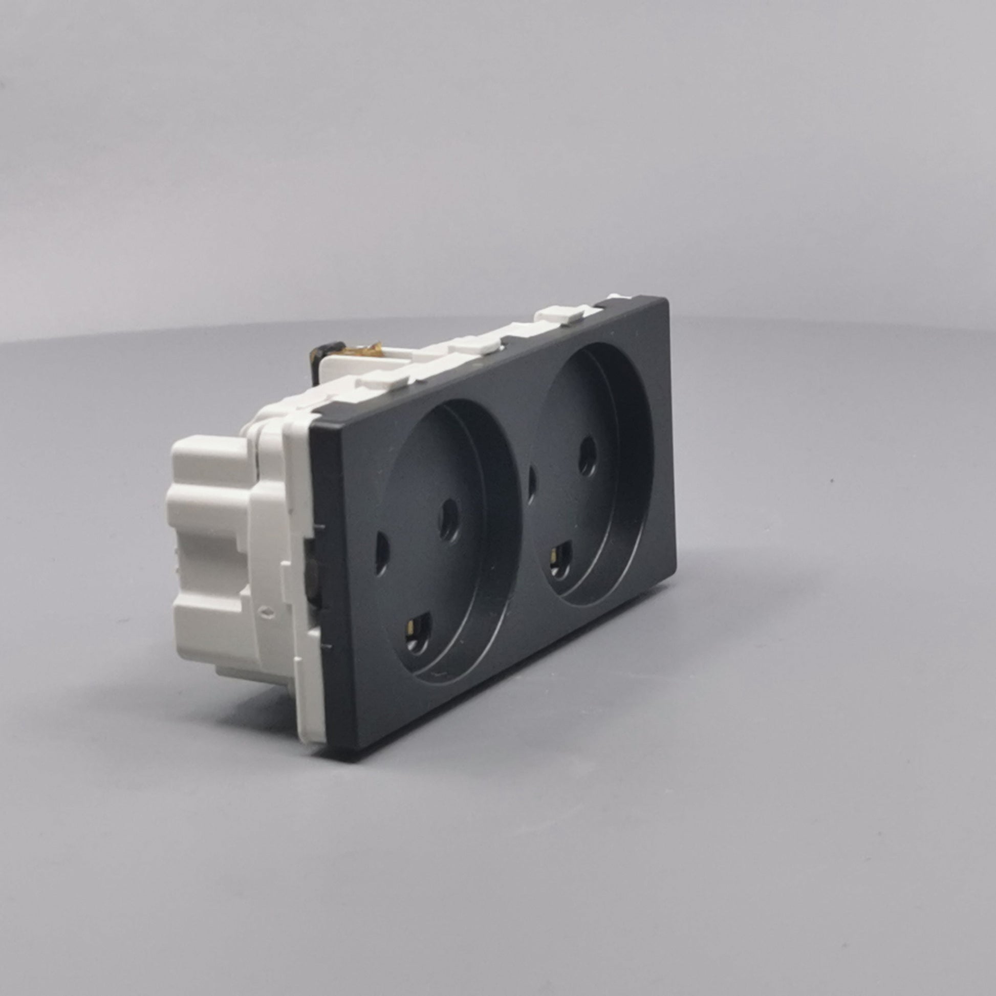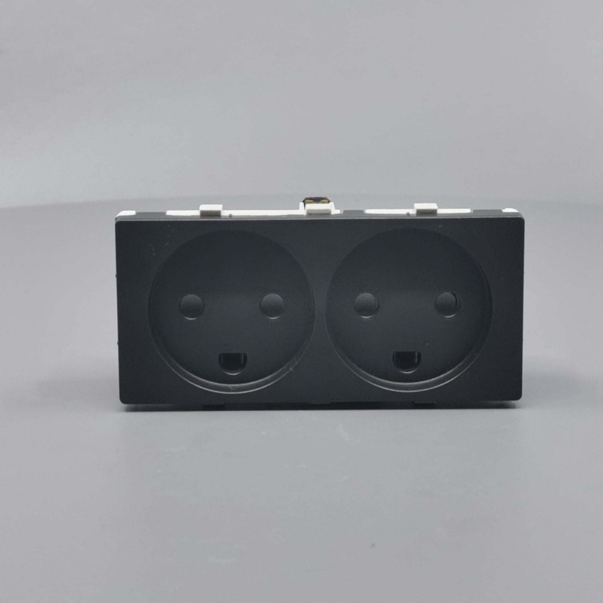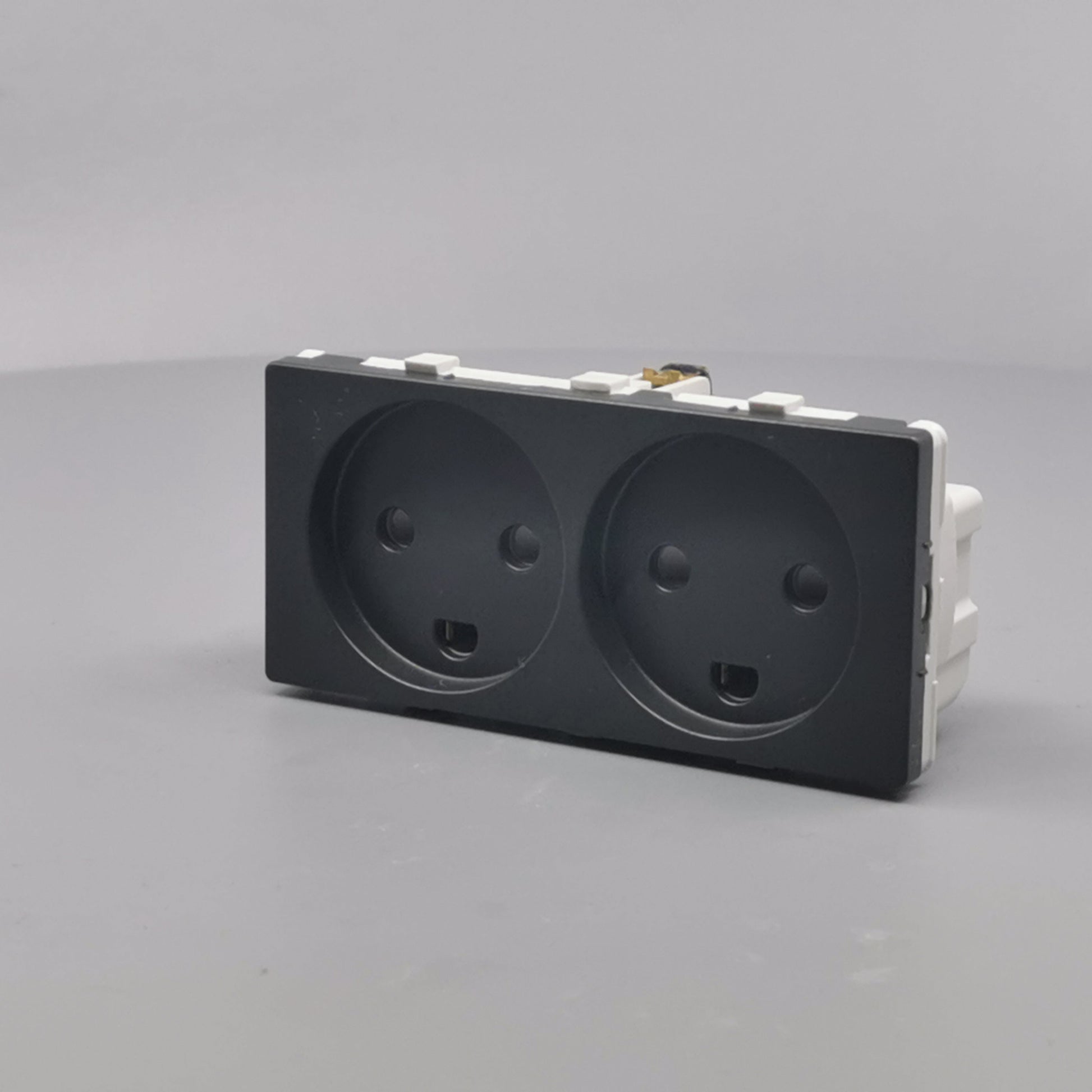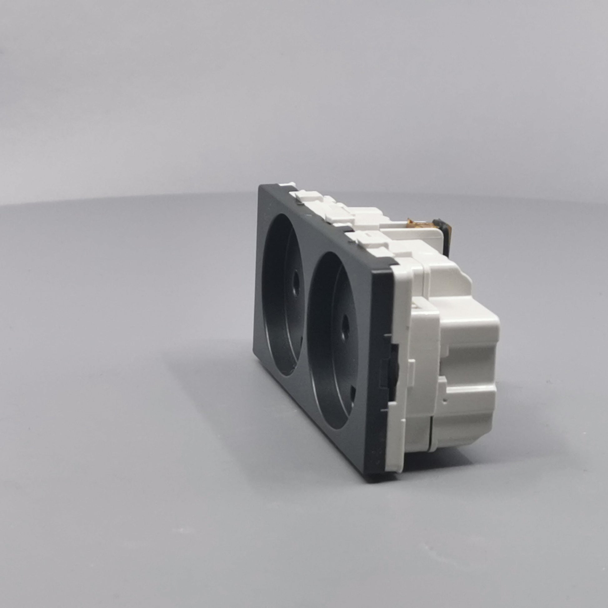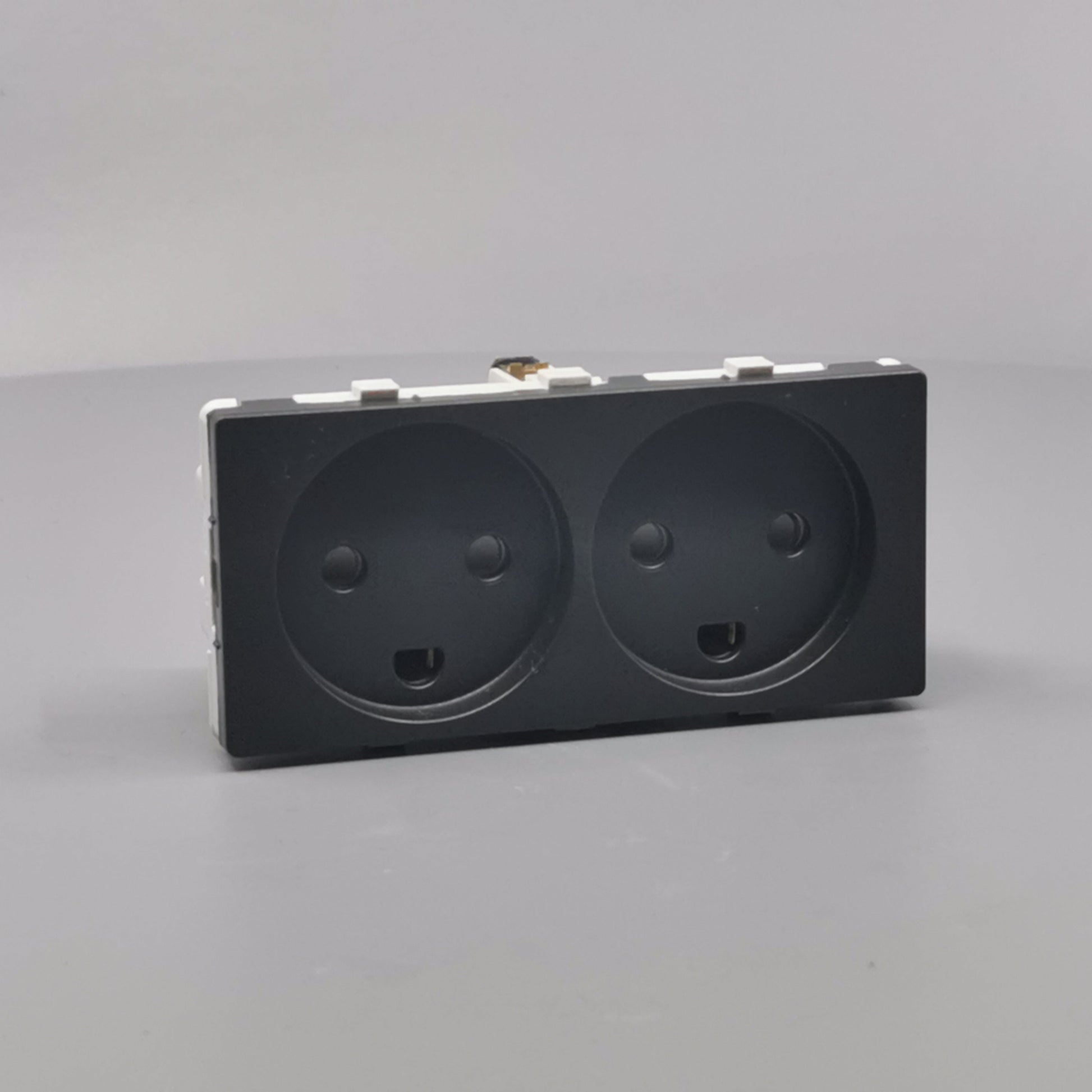 Stikkontakt 2 modul 2 tænd. 2-pol m. jord koksgrå
