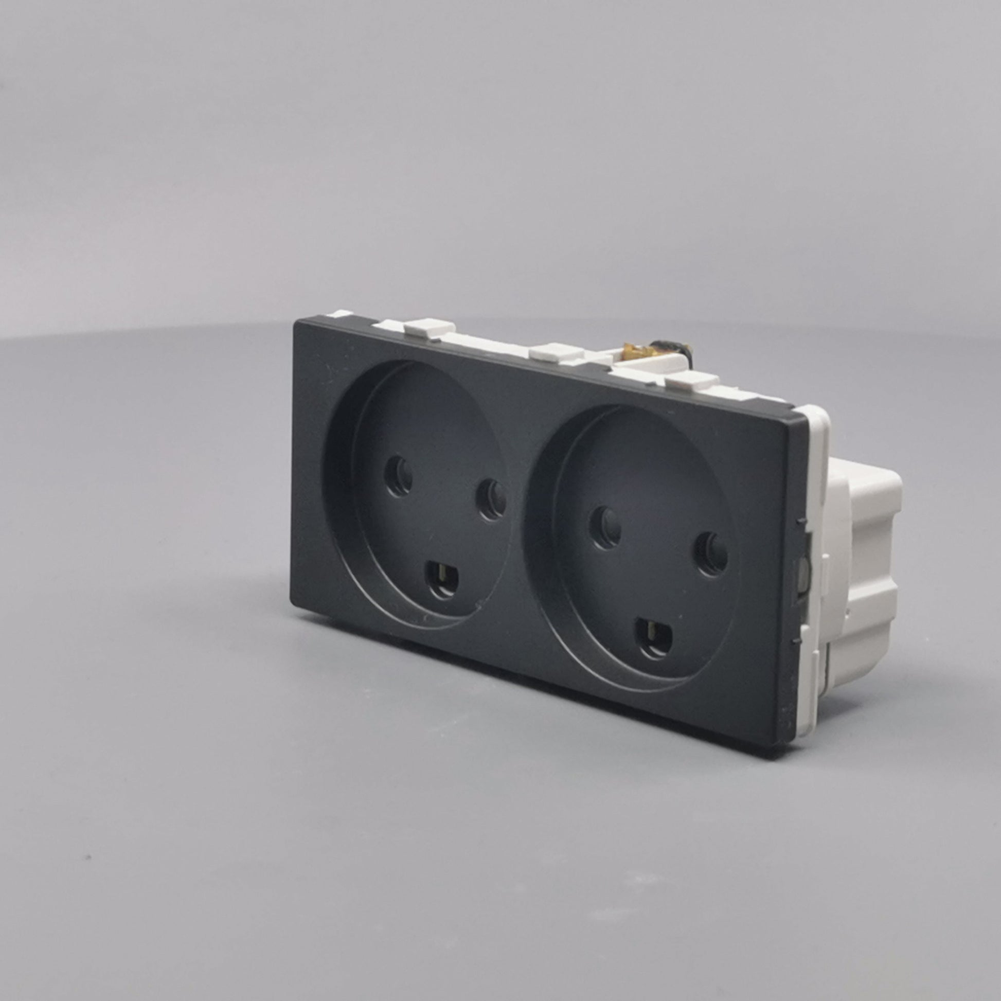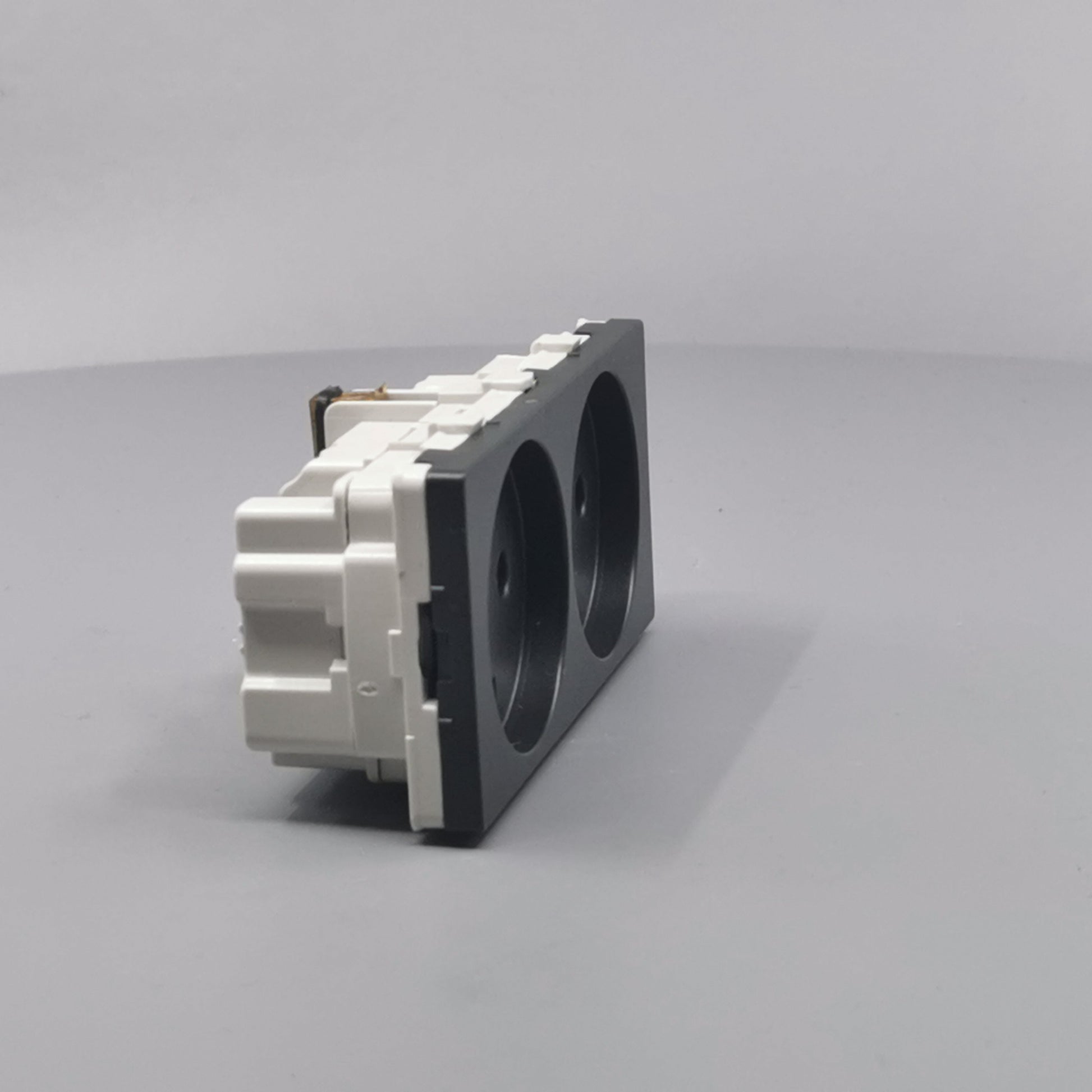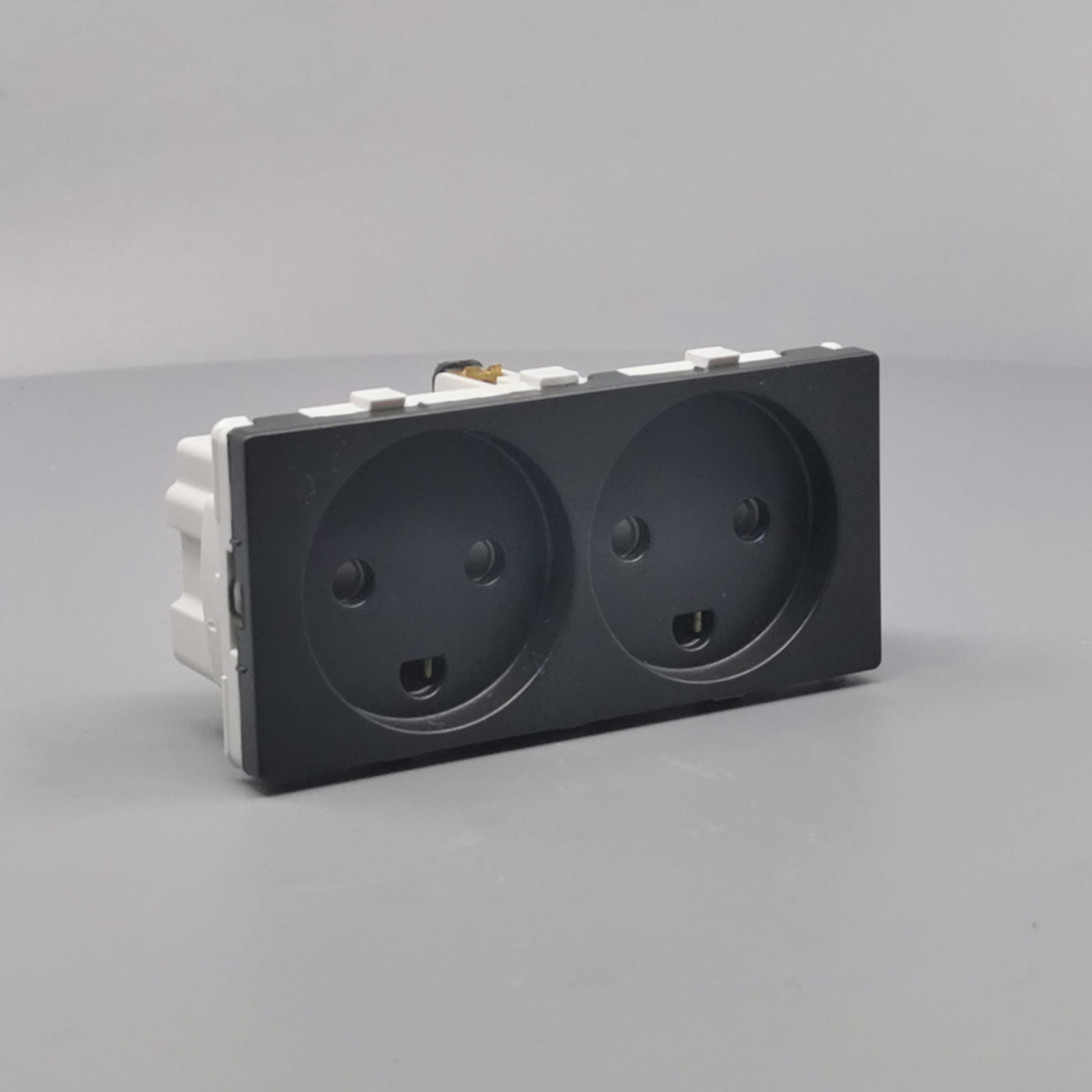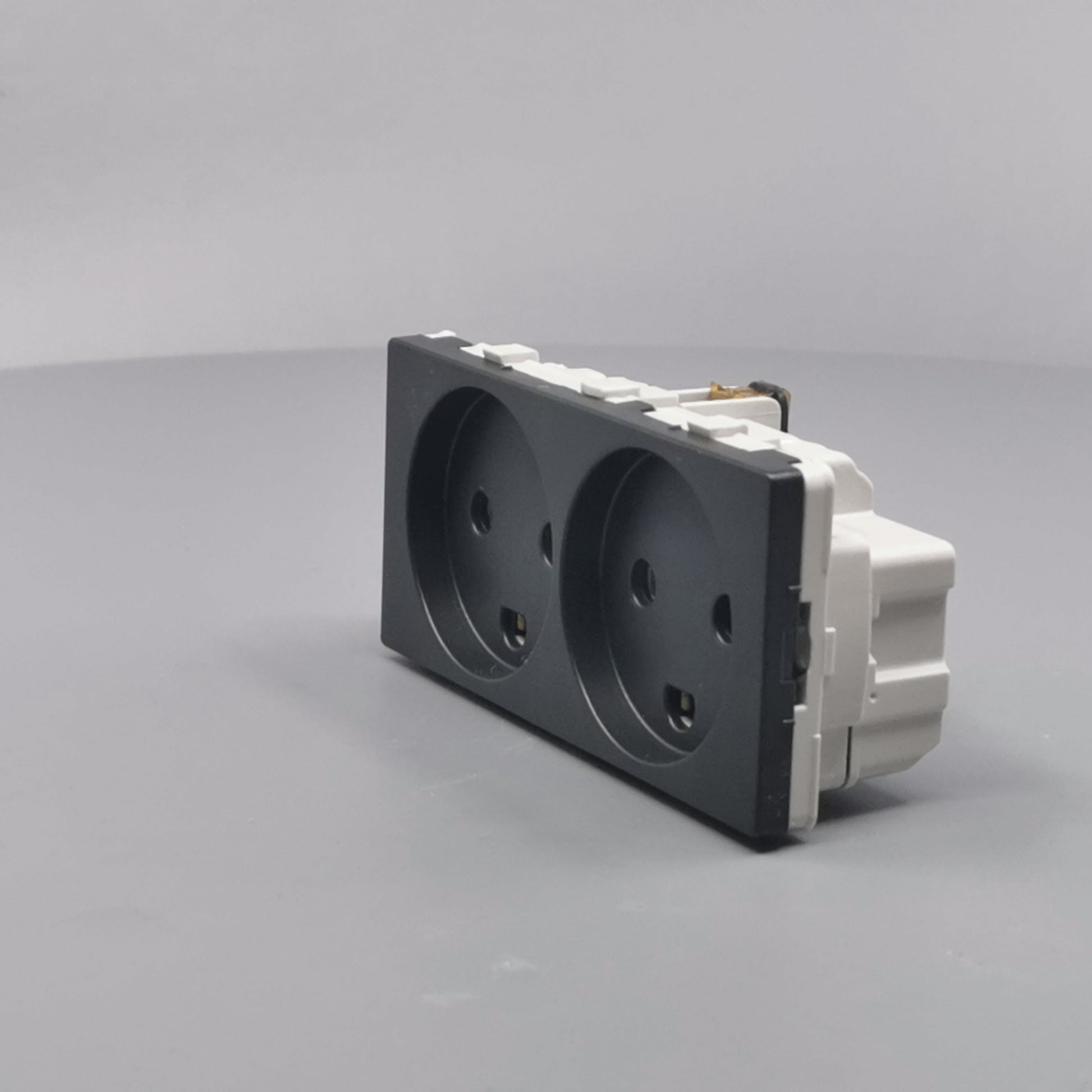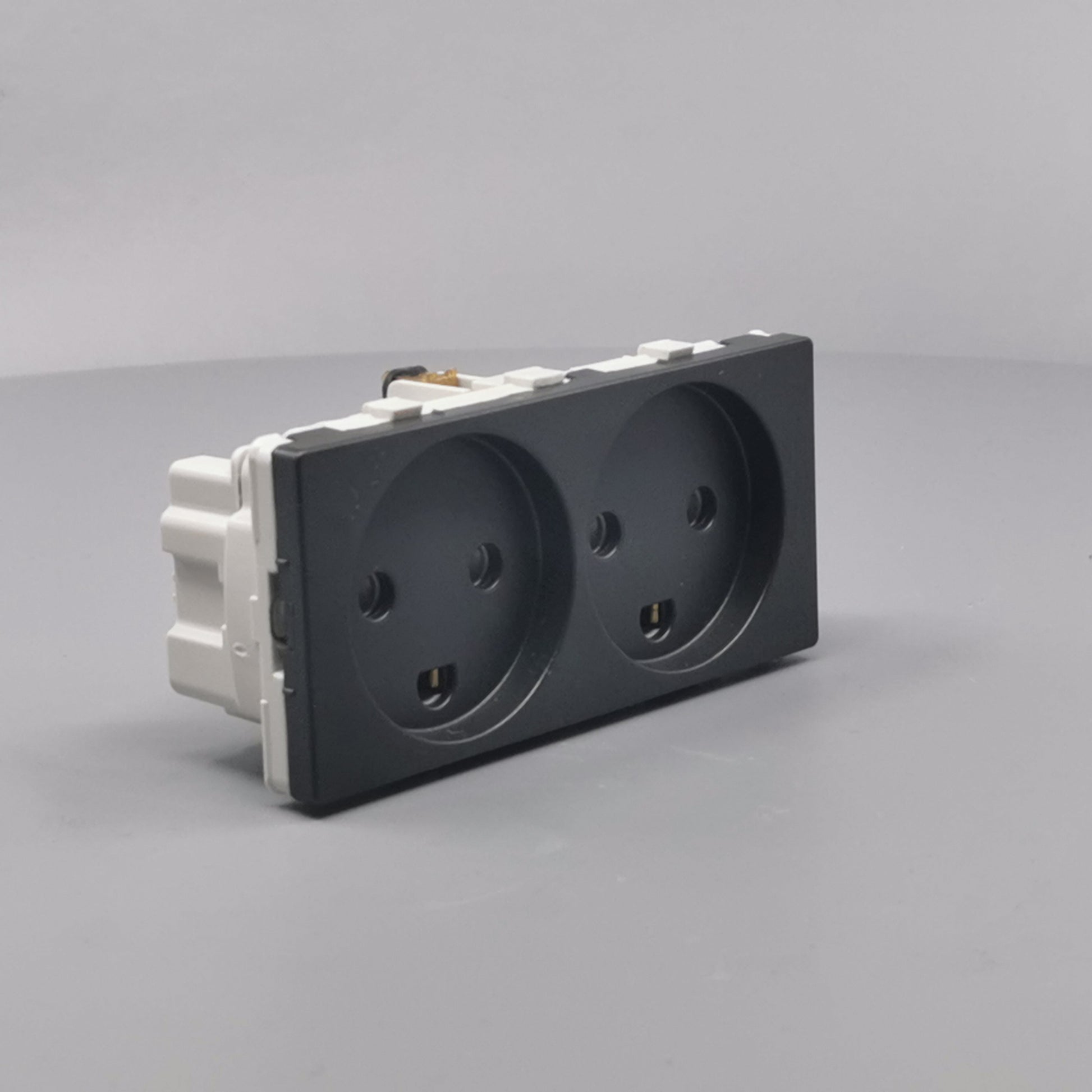 Stikkontakt 2 modul 2 tænd. 2-pol m. jord koksgrå