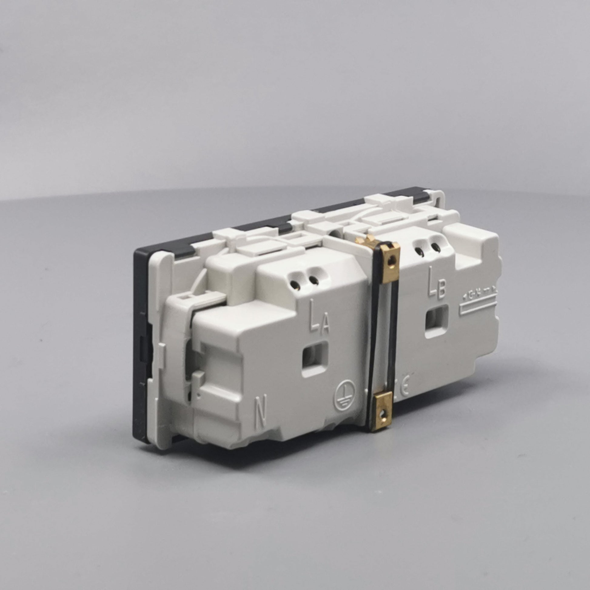 For tilslutning af 2 tændinger fra samme fase. De to stikkontakter kan styres individuelt med IHC, kontakt ur eller afbryder.