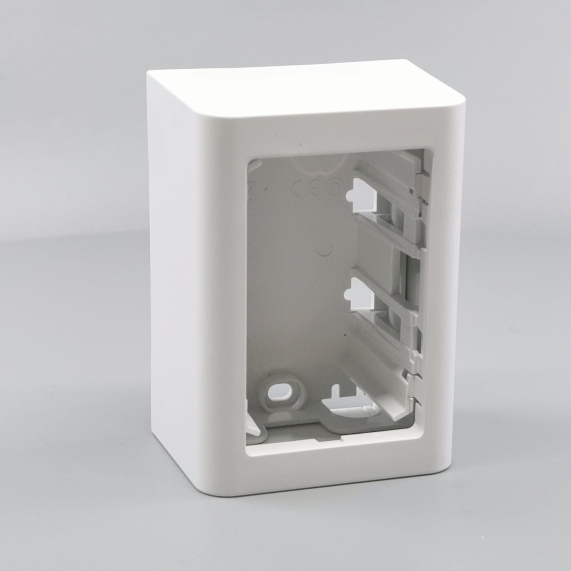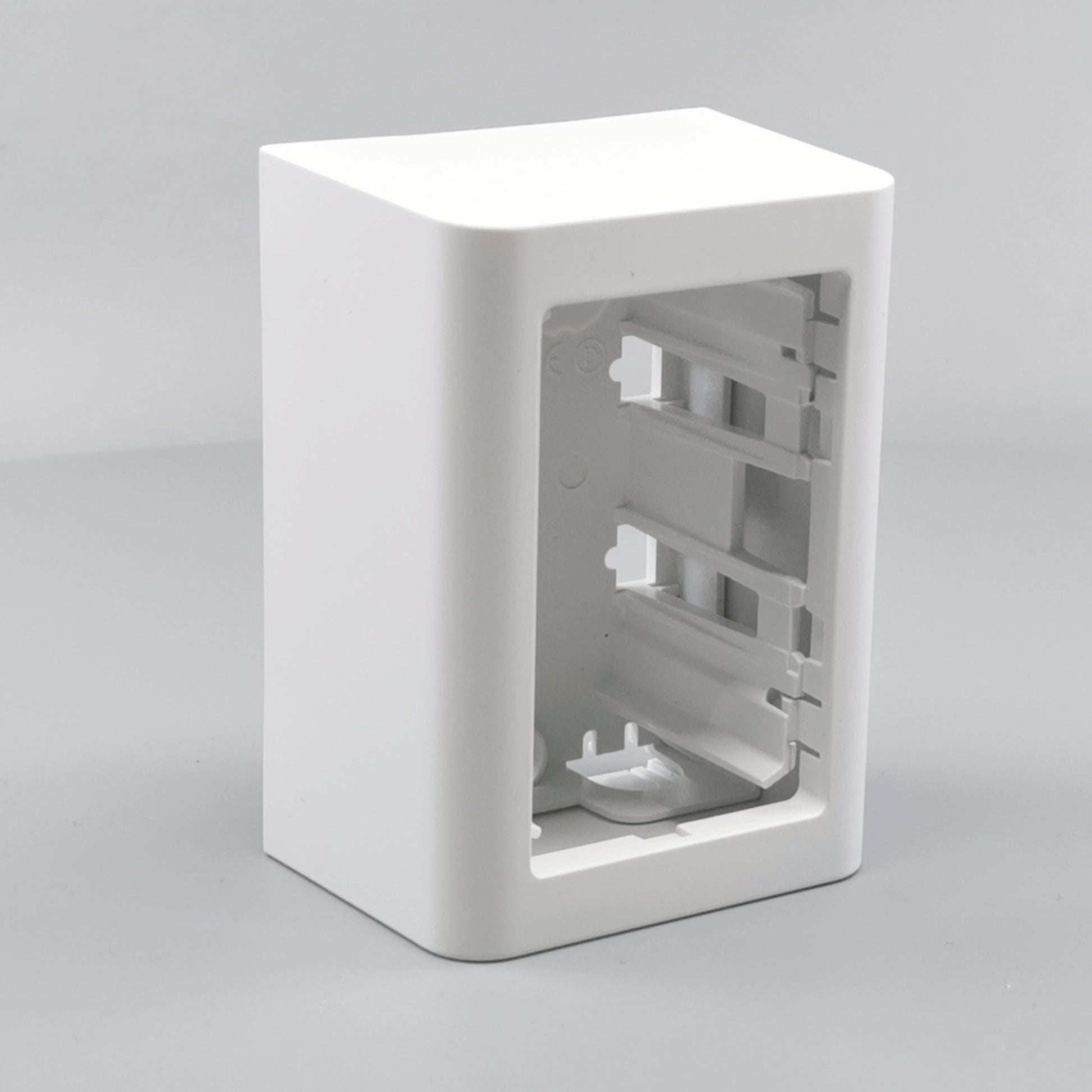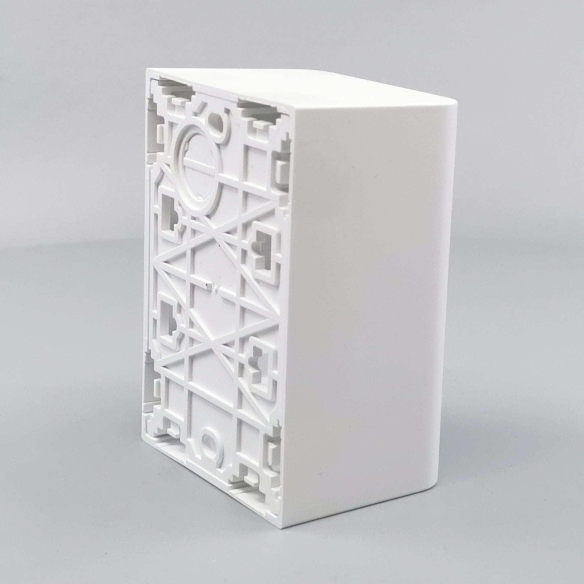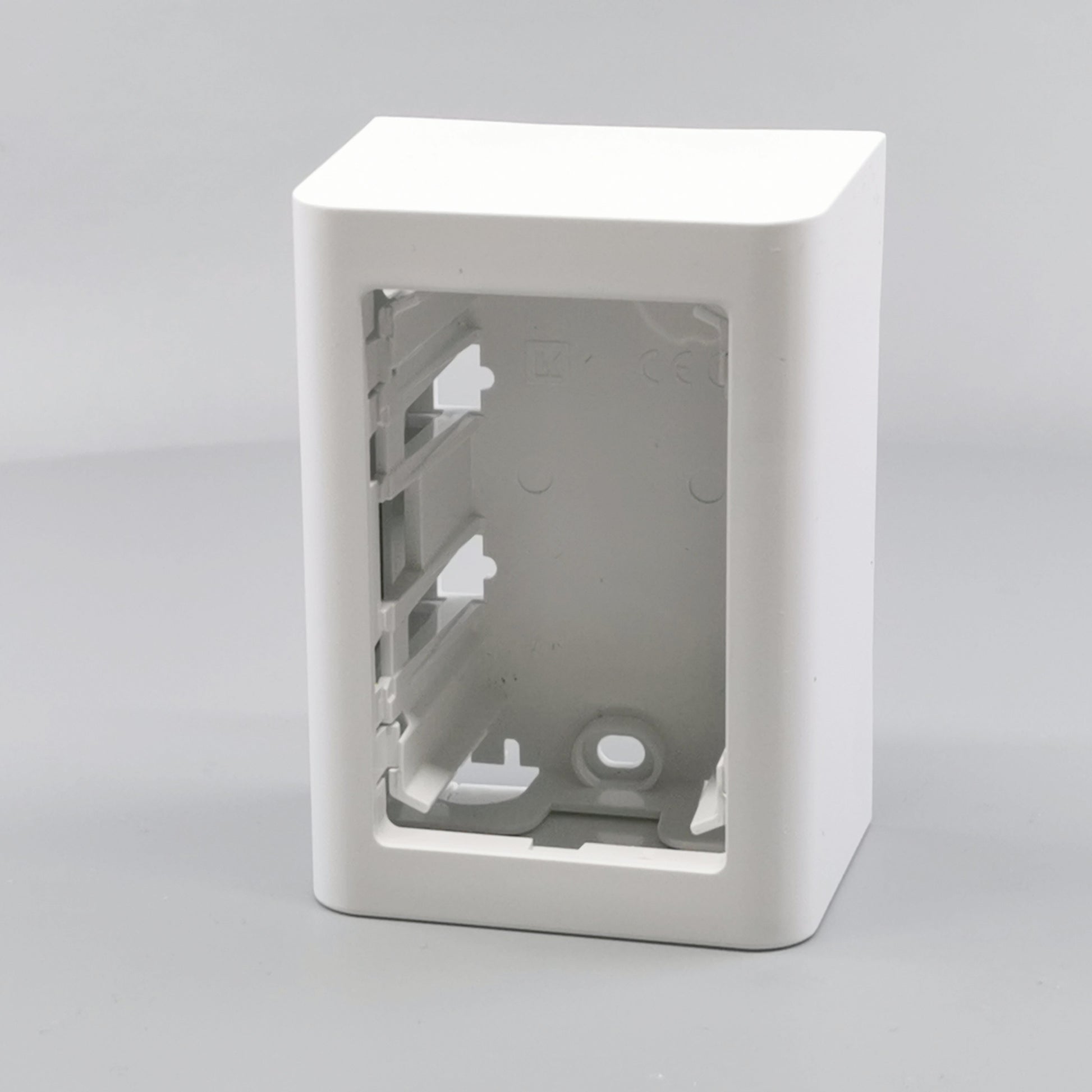 Monteres udvendig på væg. Leveres komplet med bagplade og integreret afdækning med ramme. Beregnet til montage af LK FUGA indsatse med ekstra dybde. Skruetårn anvendes ved montering af indsats uden klostykker.