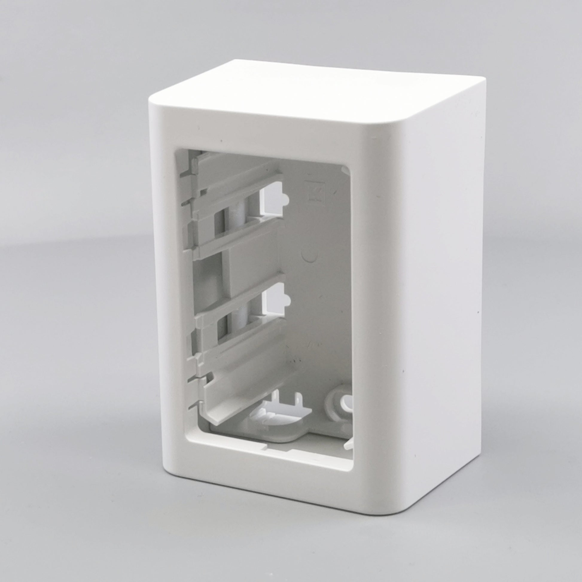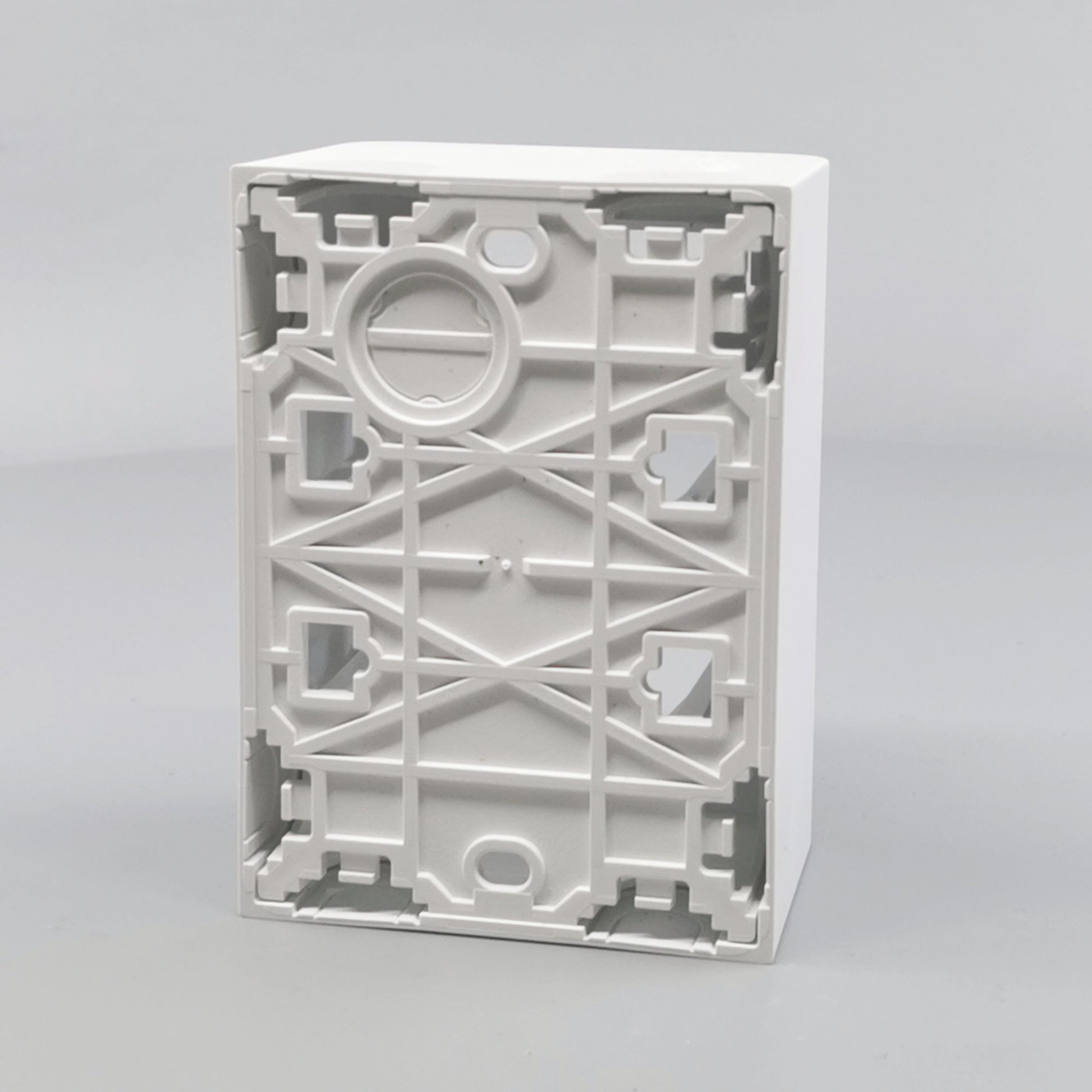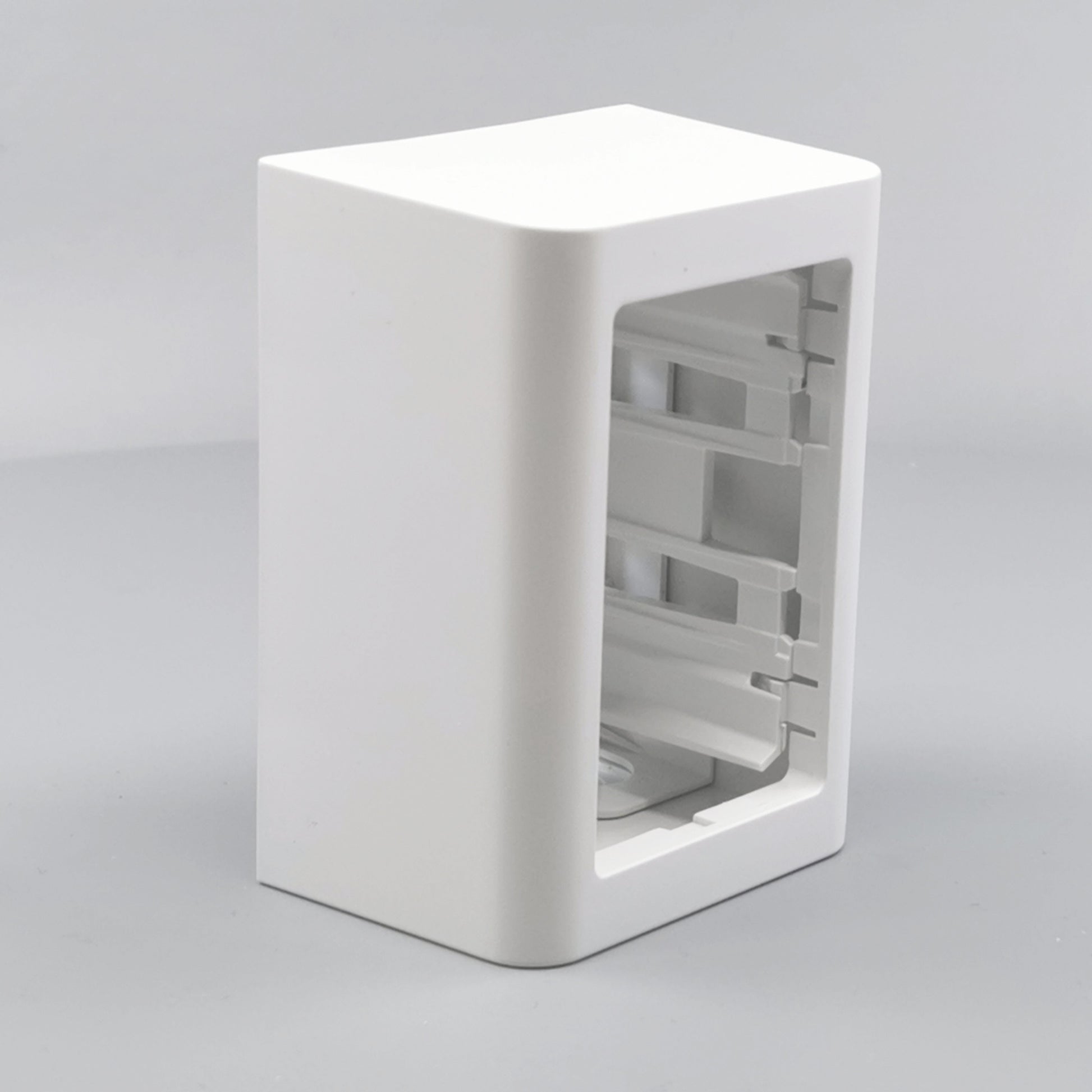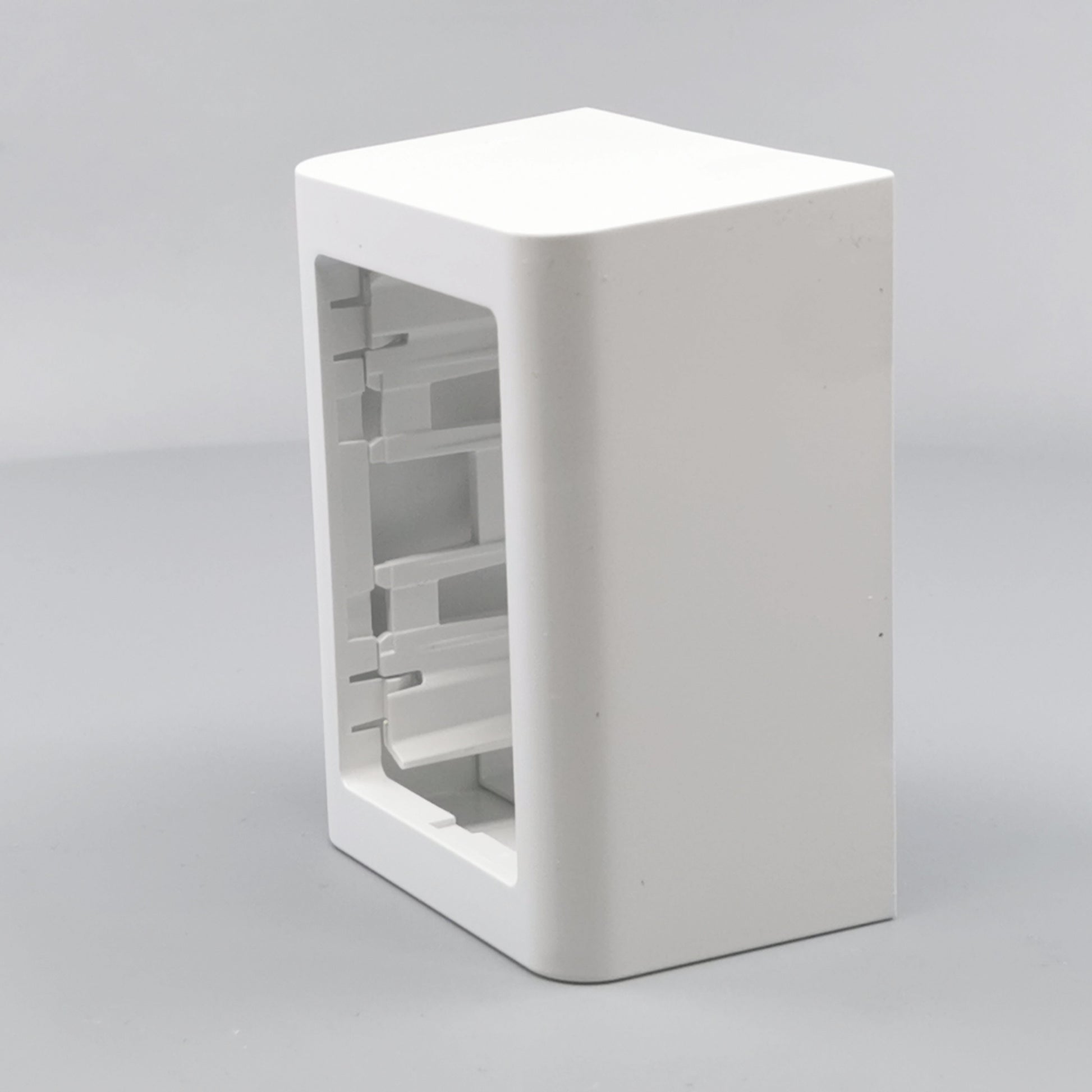 Monteres udvendig på væg. Leveres komplet med bagplade og integreret afdækning med ramme. Beregnet til montage af LK FUGA indsatse med ekstra dybde. Skruetårn anvendes ved montering af indsats uden klostykker.