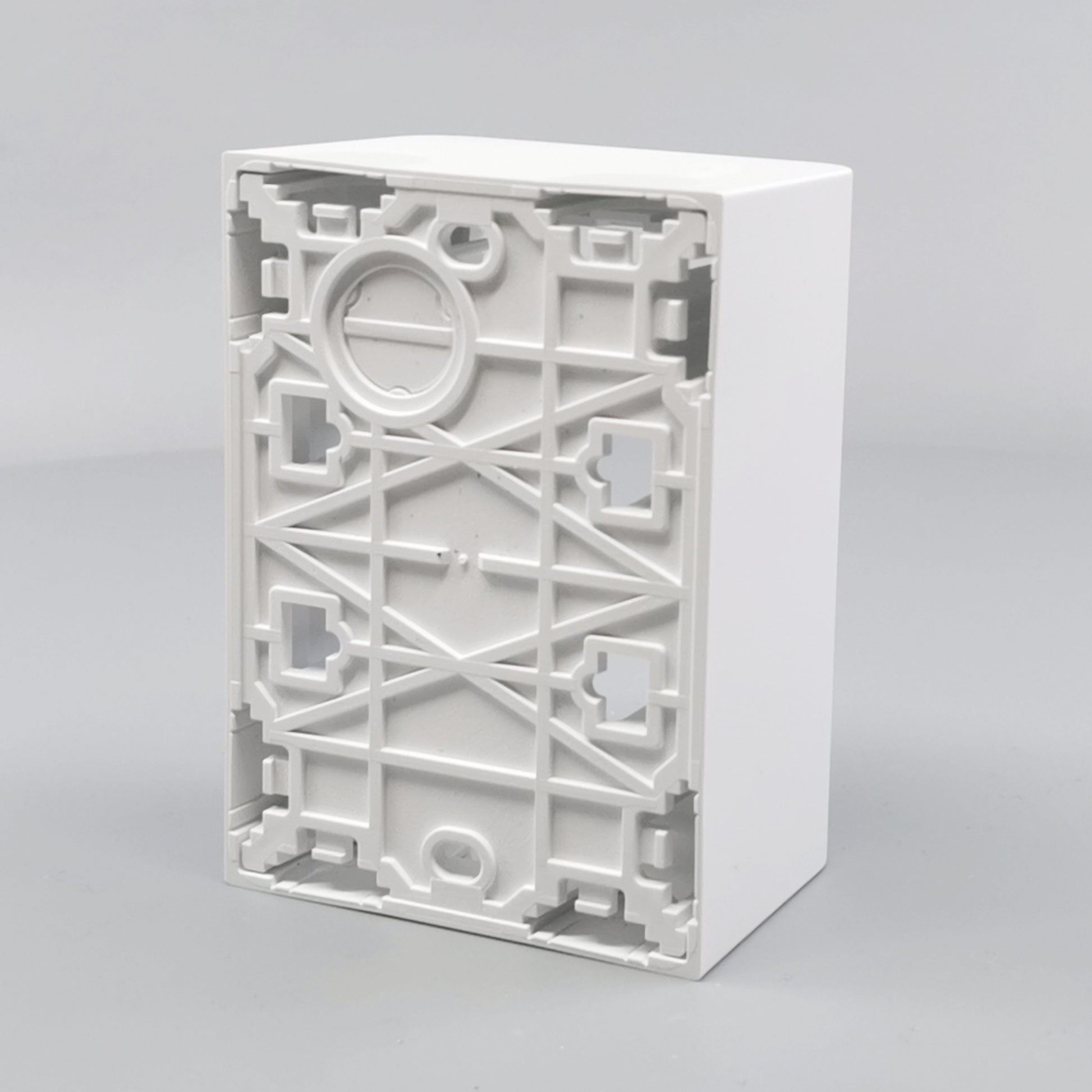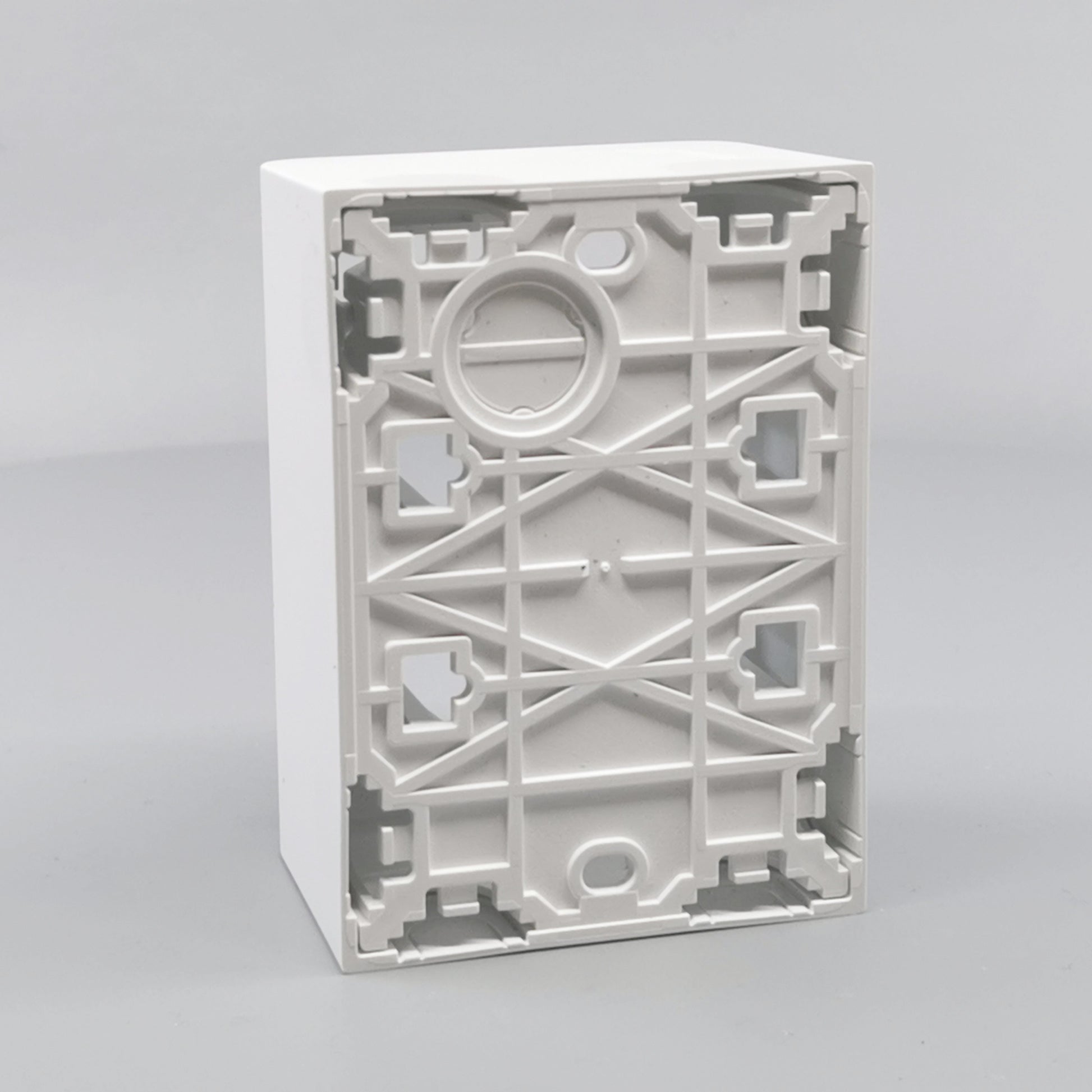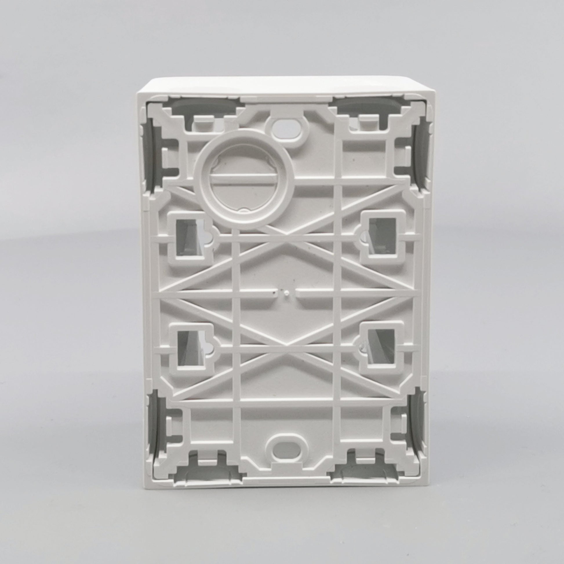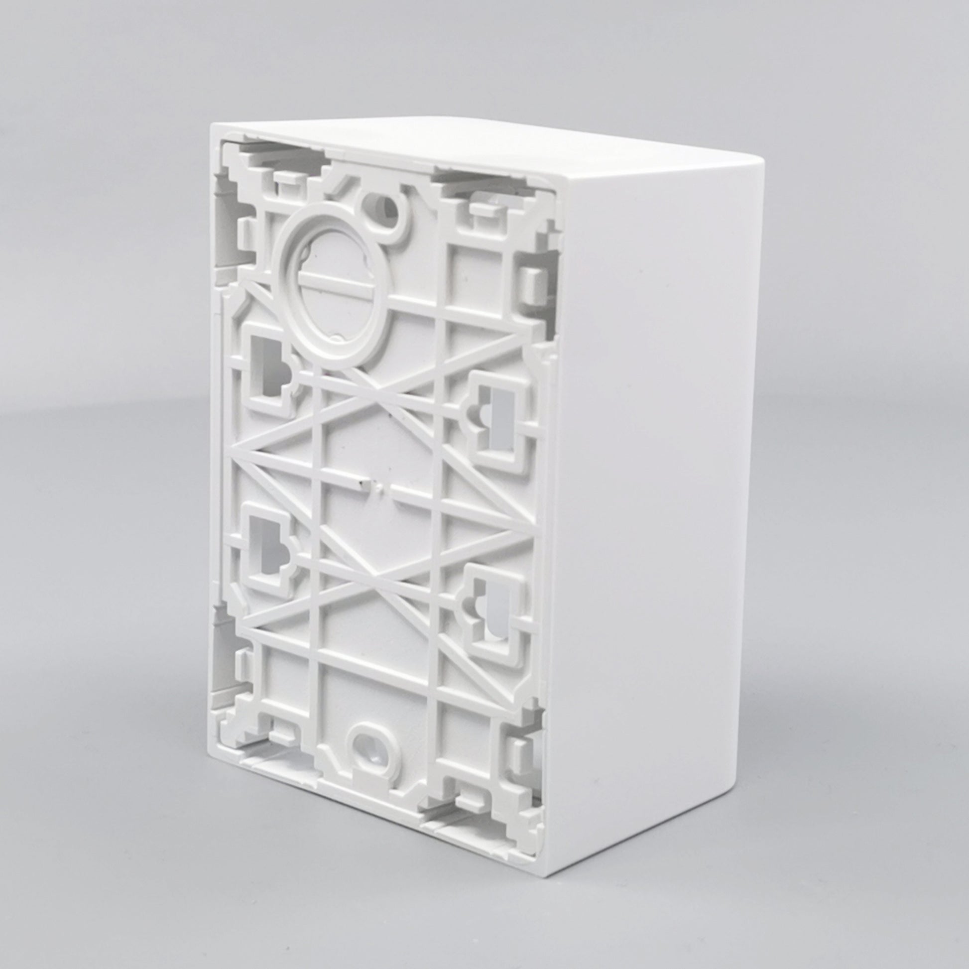 Monteres udvendig på væg. Leveres komplet med bagplade og integreret afdækning med ramme. Beregnet til montage af LK FUGA indsatse med ekstra dybde. Skruetårn anvendes ved montering af indsats uden klostykker.