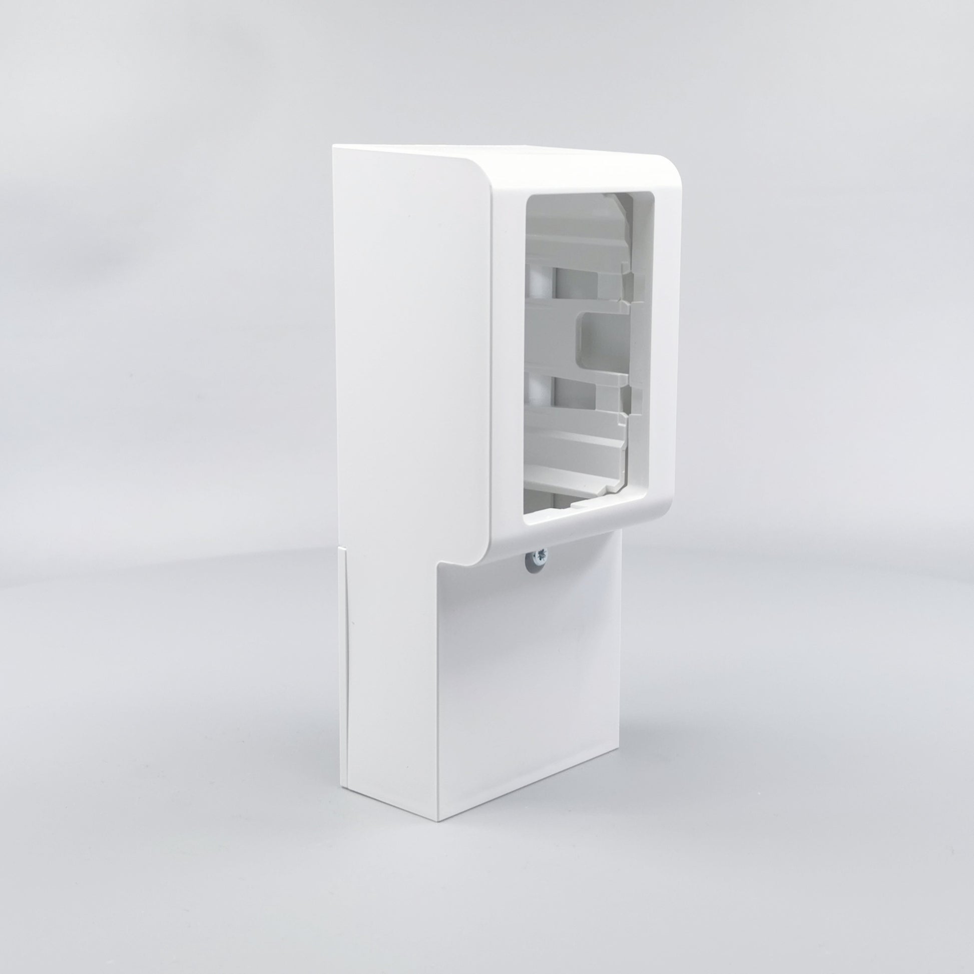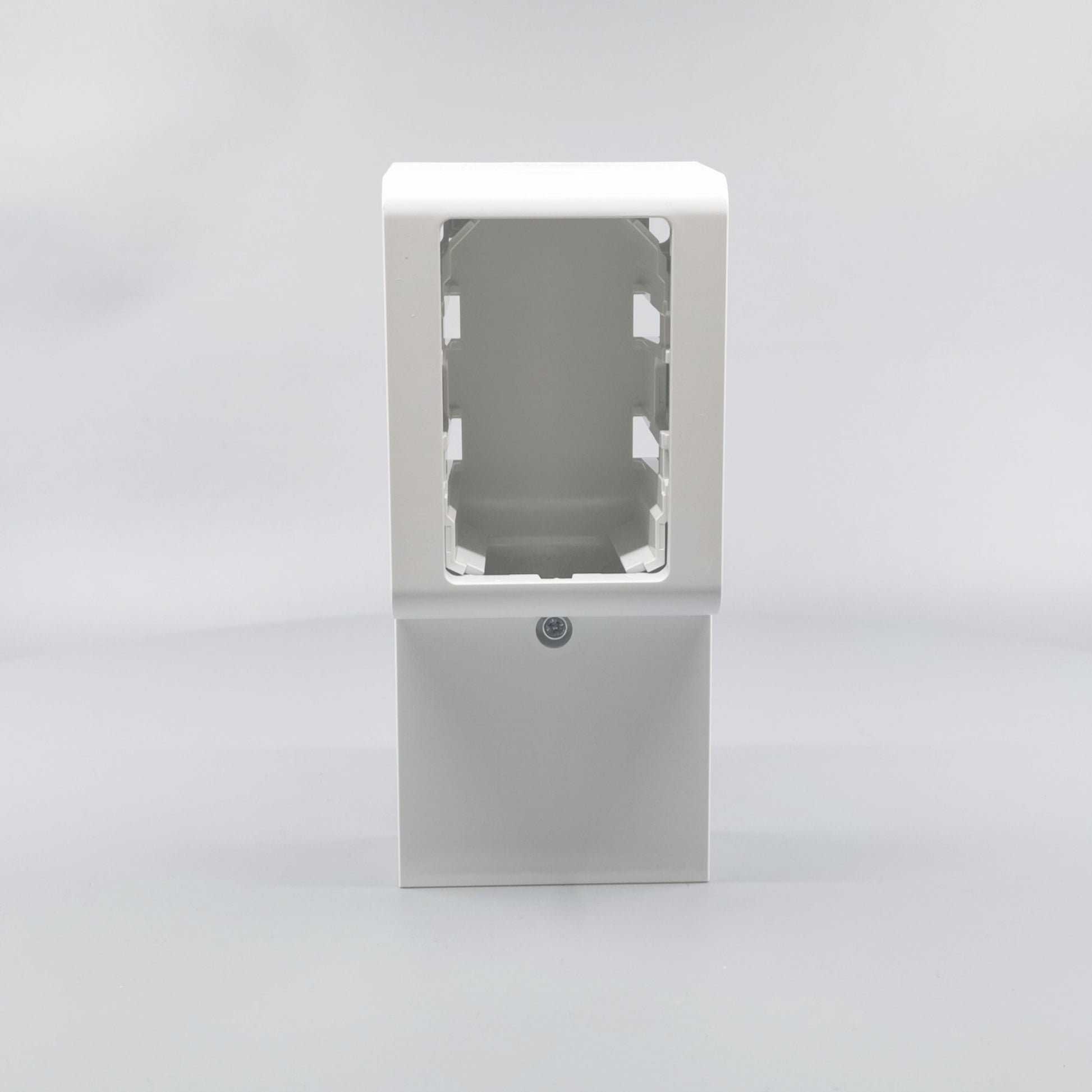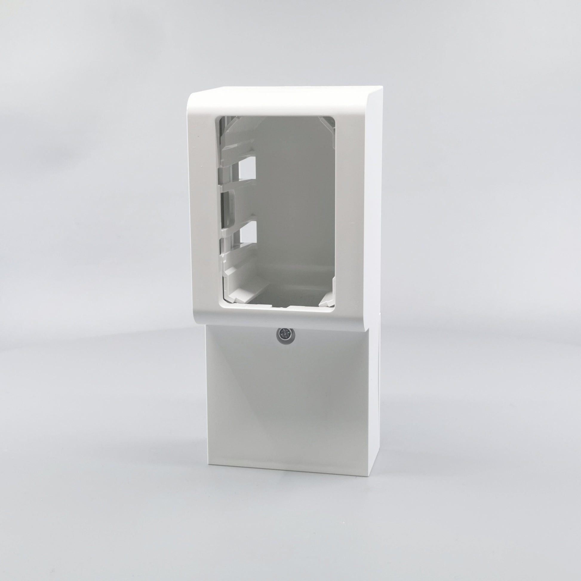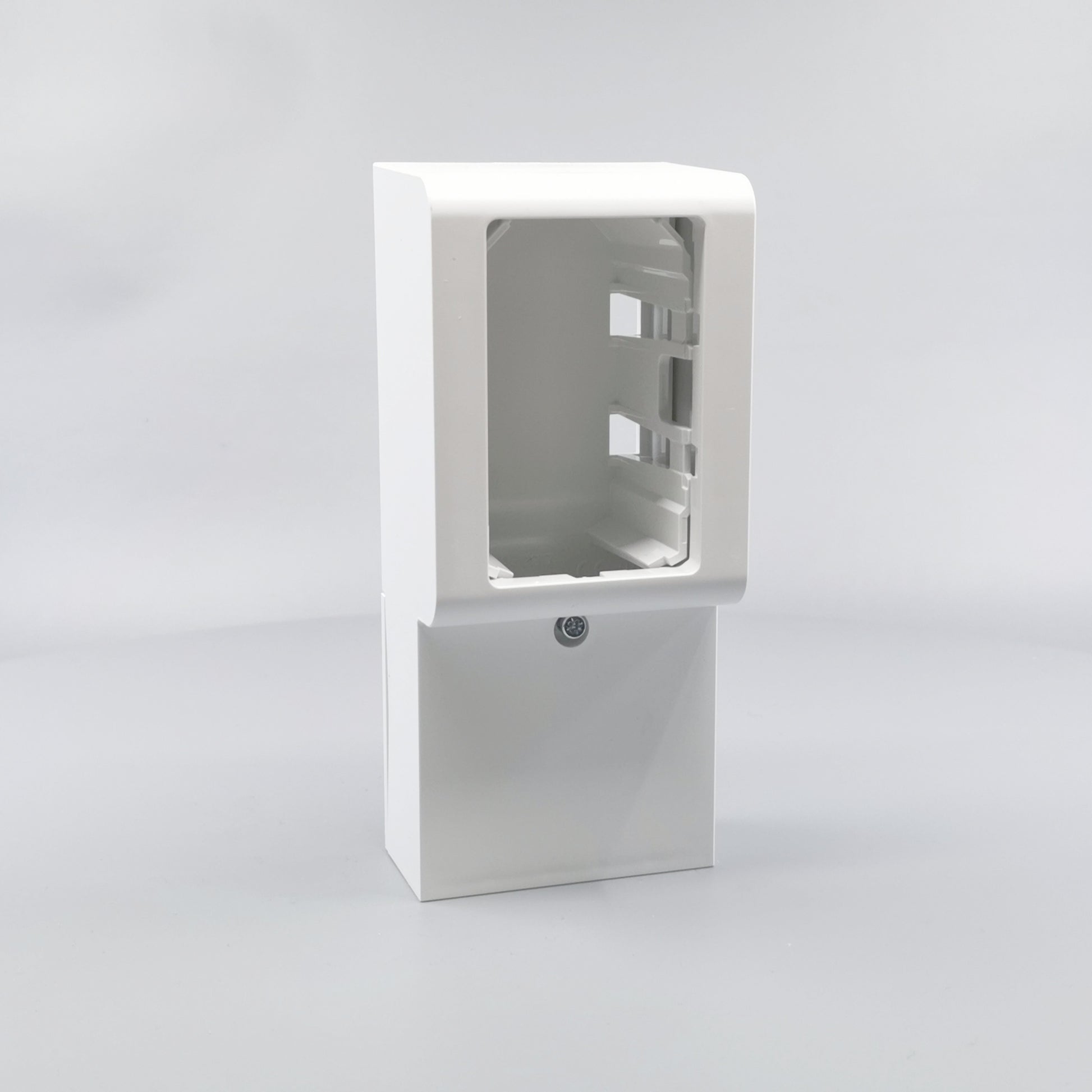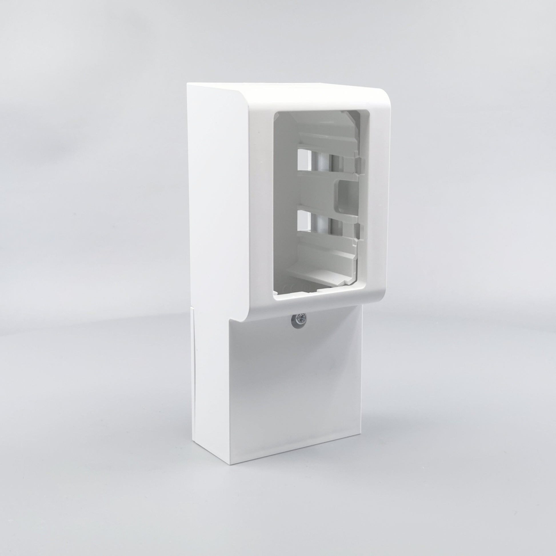Anvendes udvendig i fodliste. Leveres komplet med dæk- og bagplade og integreret afdækning med ramme. Beregnet til montage af FUGA 1½ modul indsatse med stor indbygningsdybe. Skruetårn (tilbehør) anvendes ved monterin... Se mere