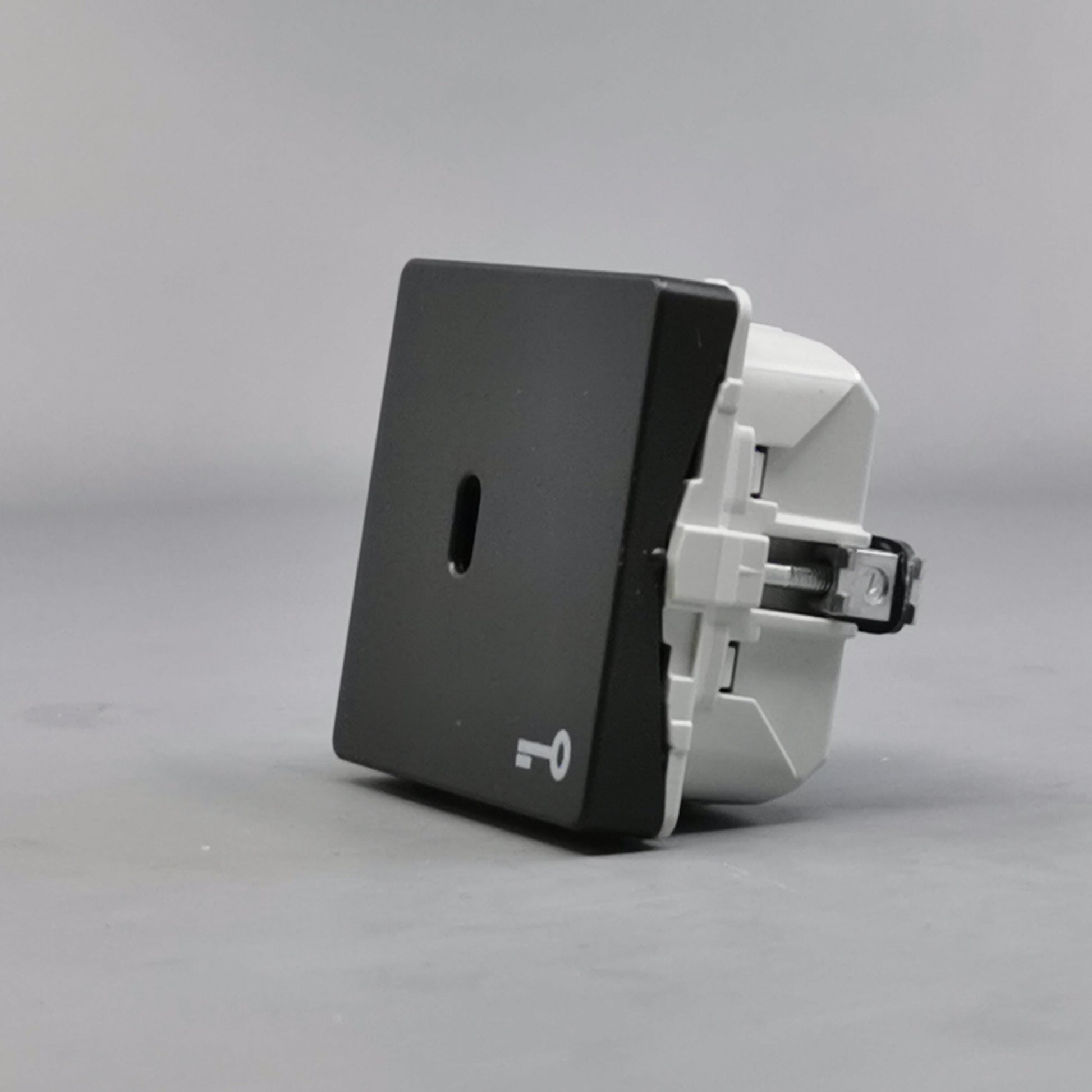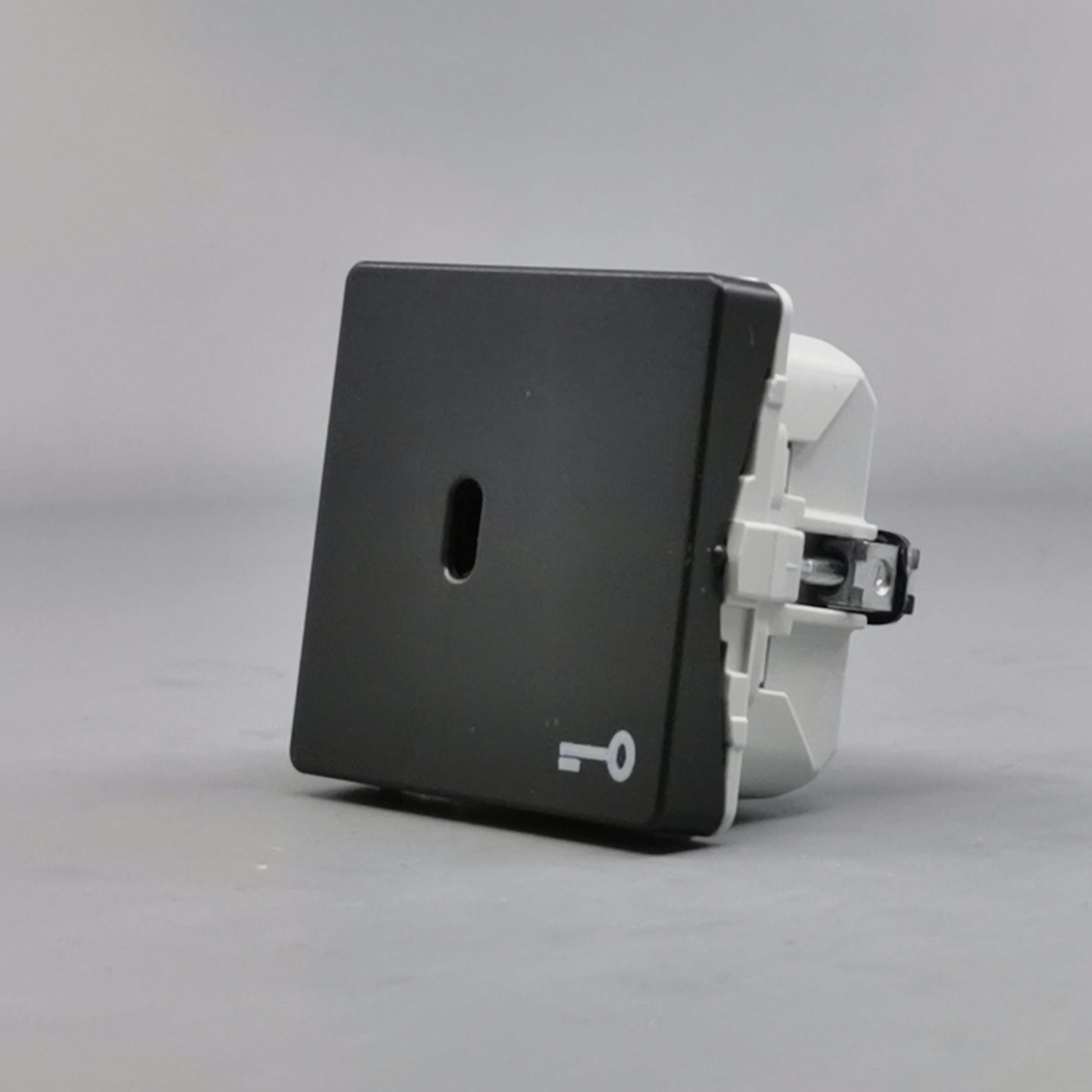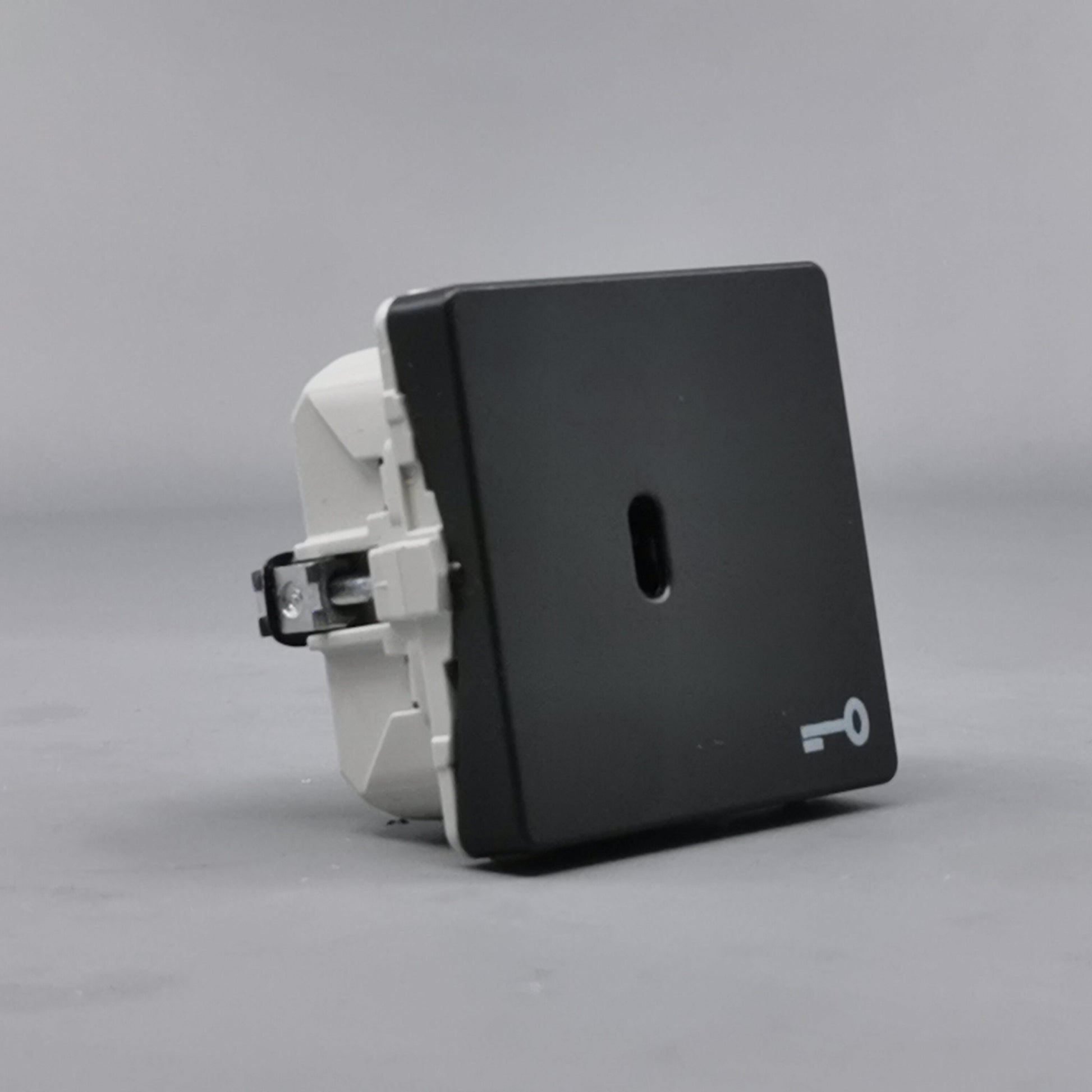 Afbryder for bolig eller tilsvarende faste installationer, max 16 A. Anvendes til forhindring af utilsigtet afbrydelse. Montage på FUGA dåser og underlag. Montage i FUGA rammer.
