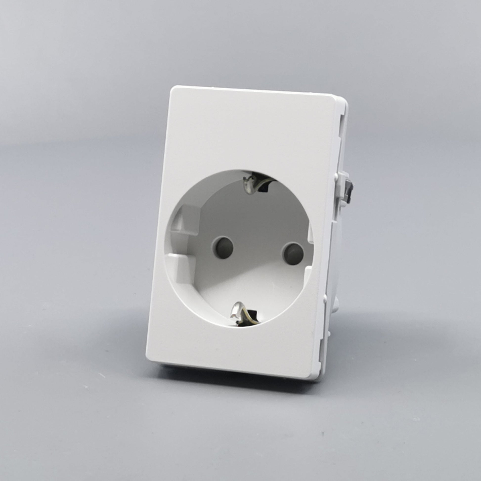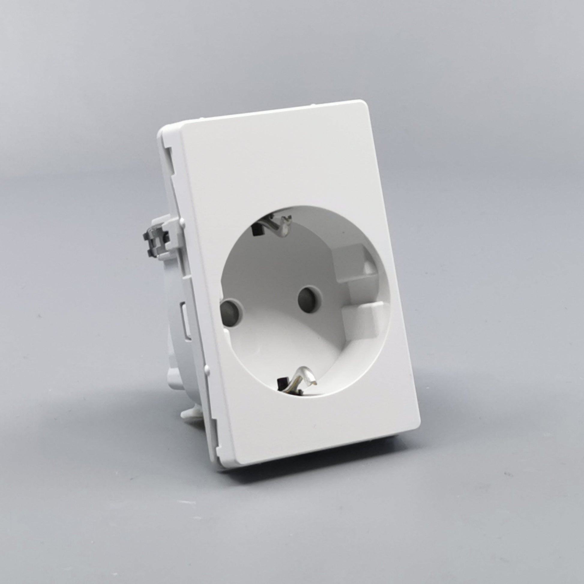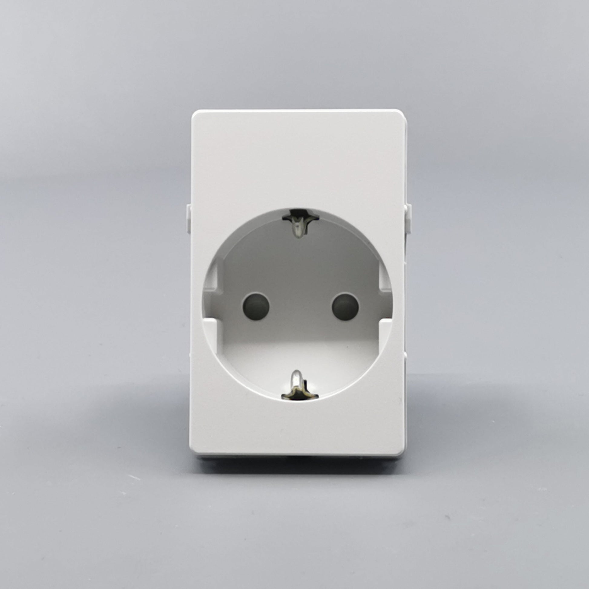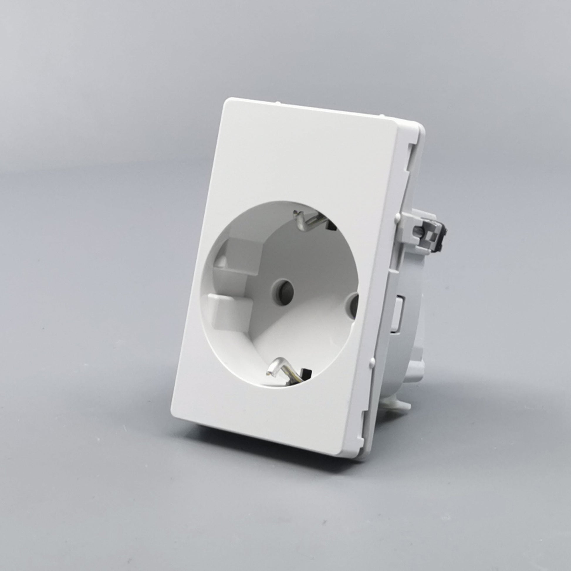 Stikkontakt for bolig installationer eller lignende. Sikrer overførsel af jord uden at anvende adaptere eller udskiftning af stikpropper. Den primære befæstelse i dåser og underlag sker via de medleverede klostykker. ... Se mere
