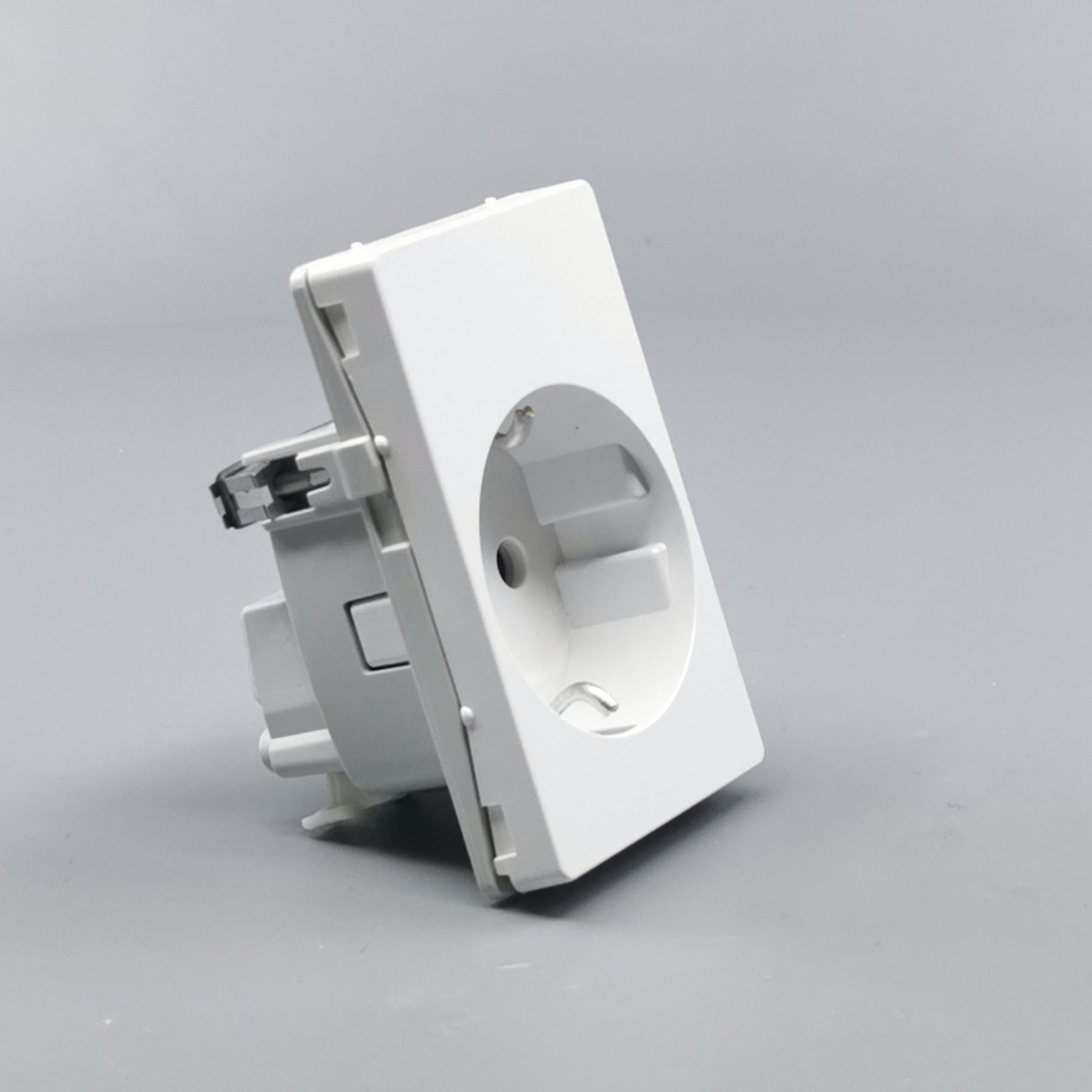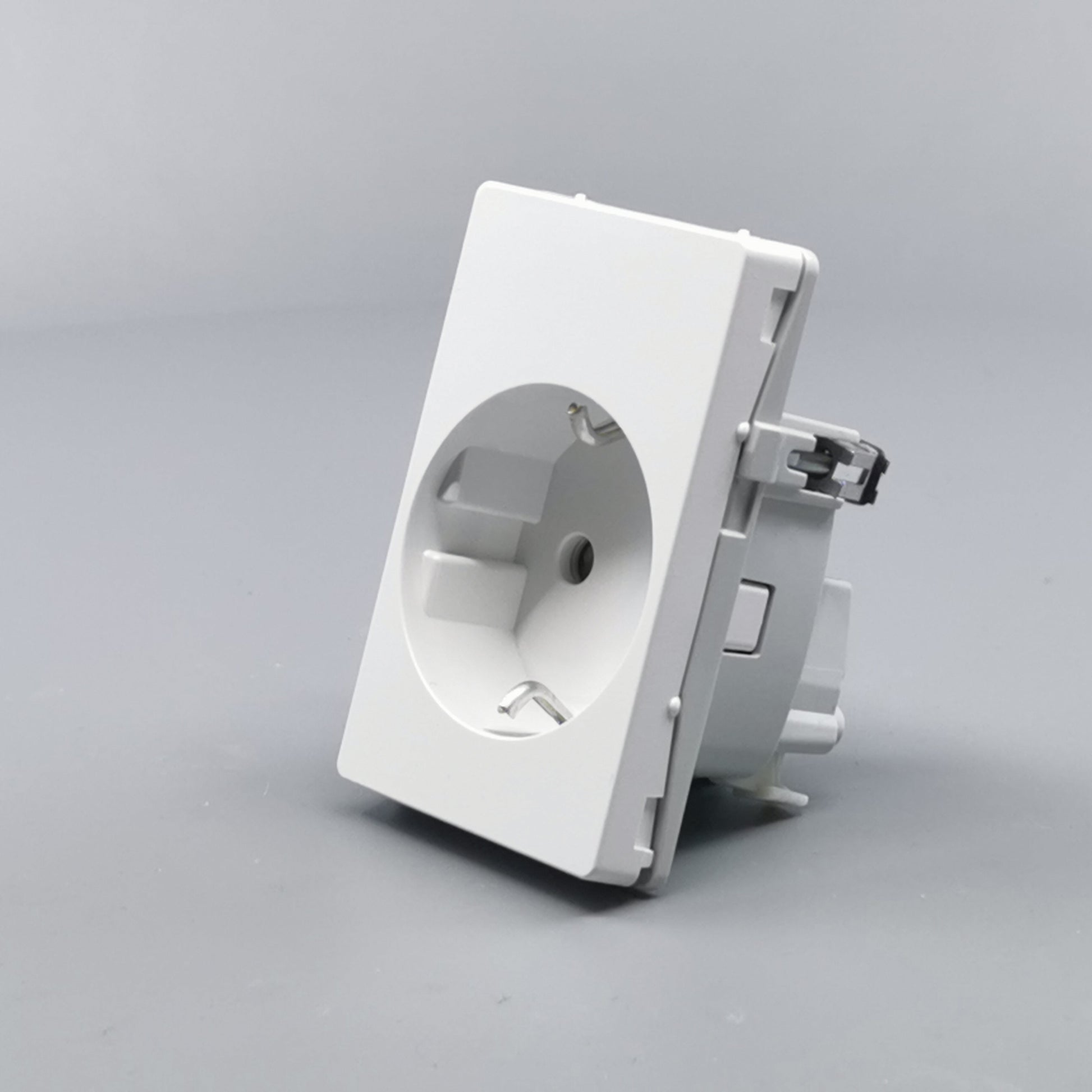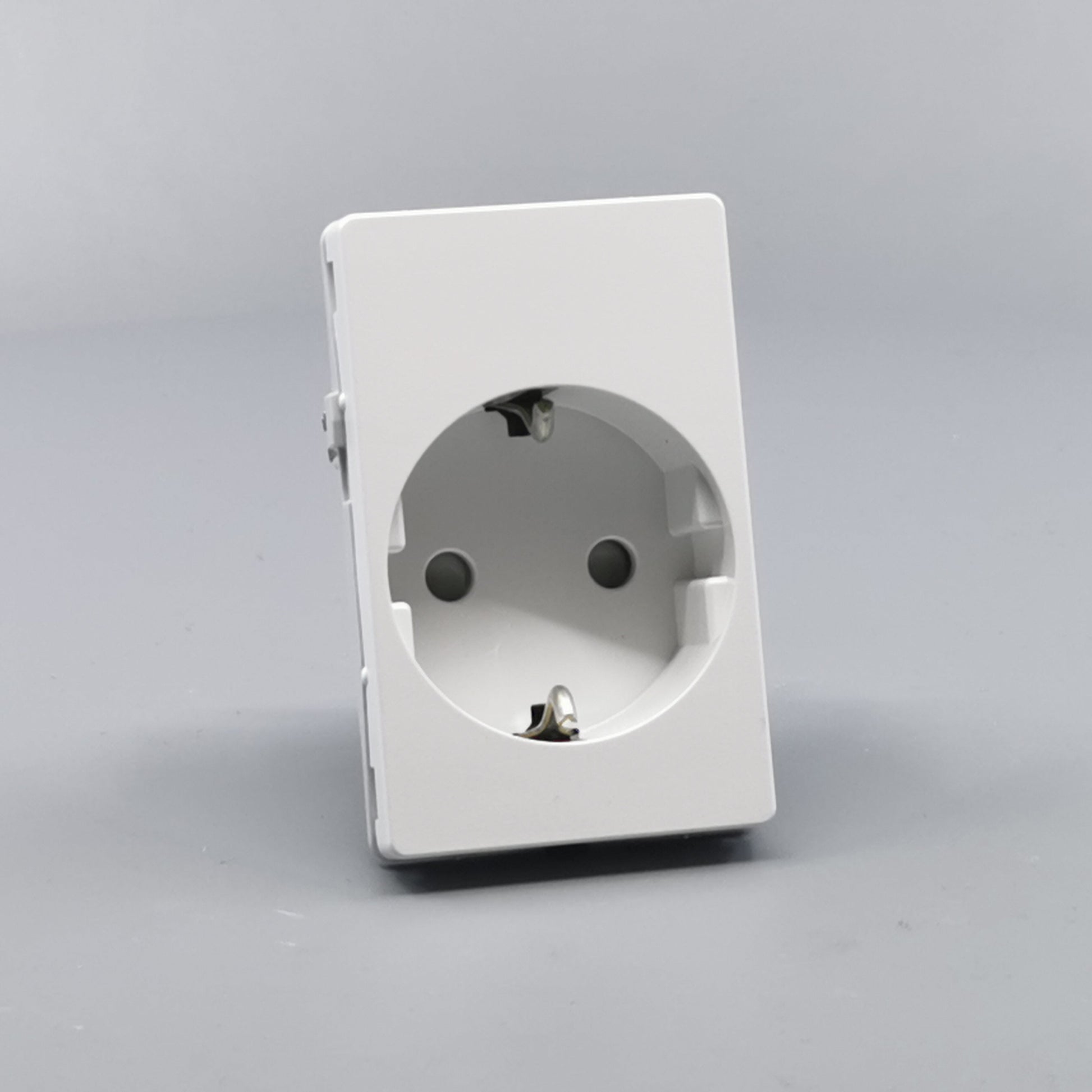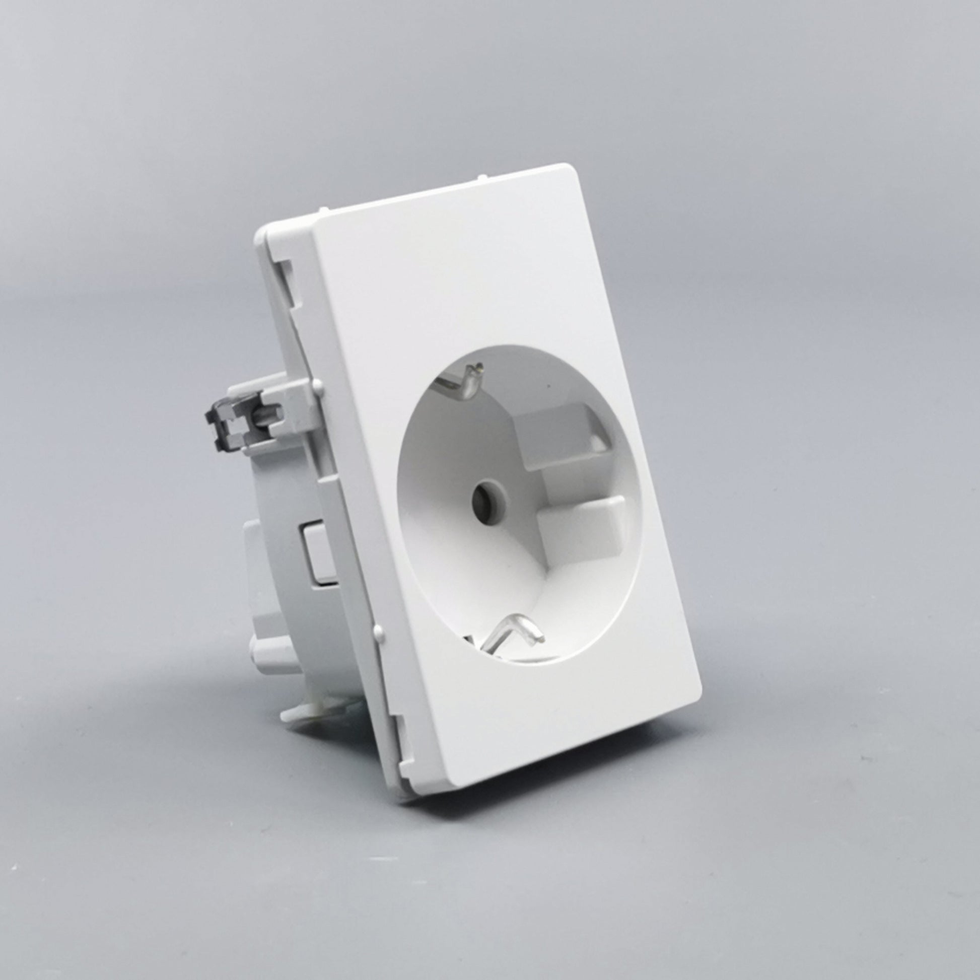 Stikkontakt for bolig installationer eller lignende. Sikrer overførsel af jord uden at anvende adaptere eller udskiftning af stikpropper. Den primære befæstelse i dåser og underlag sker via de medleverede klostykker. ... Se mere