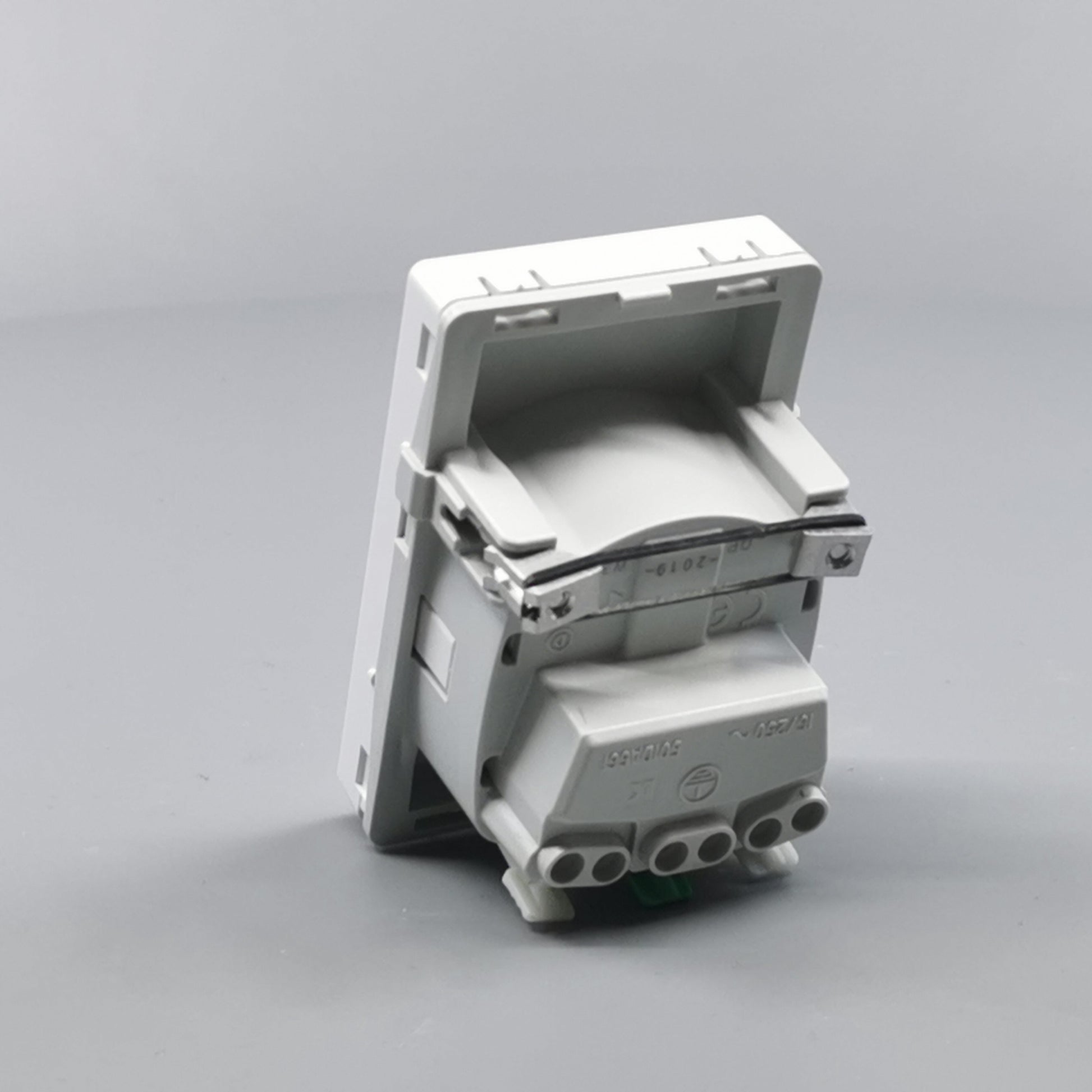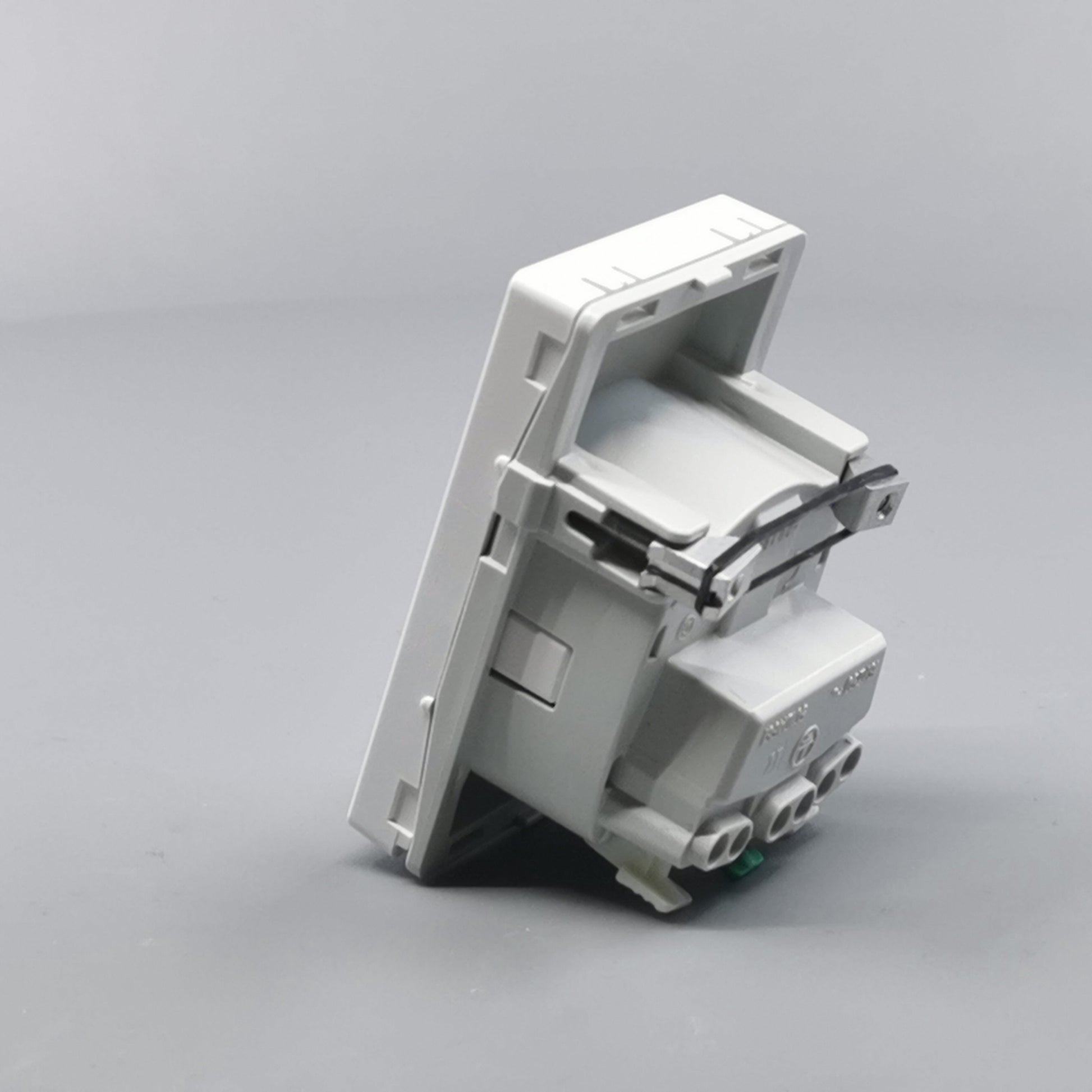 Har dobbelte skrueløse klemmer for tilslutning med 1,5-2,5 mm² ledning.