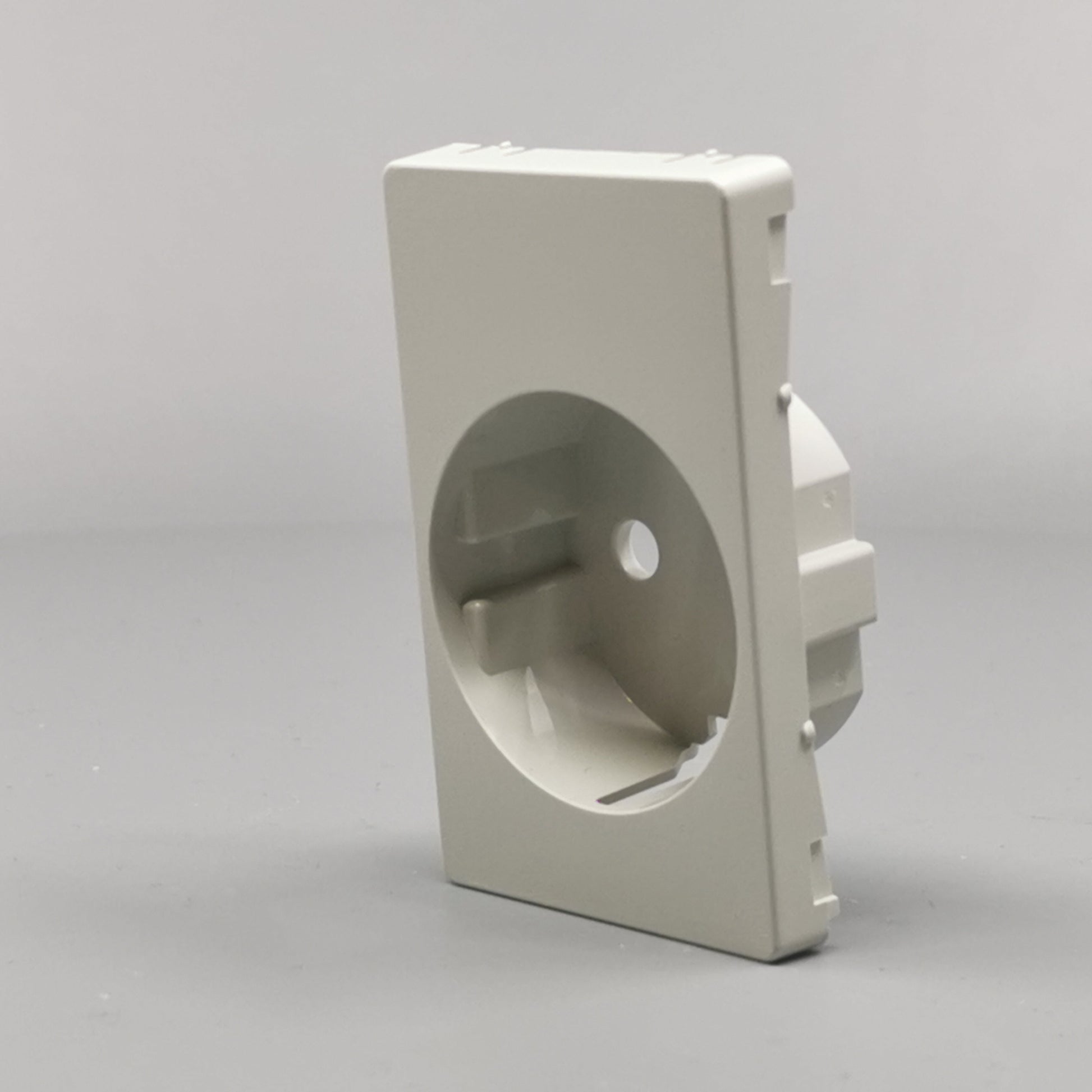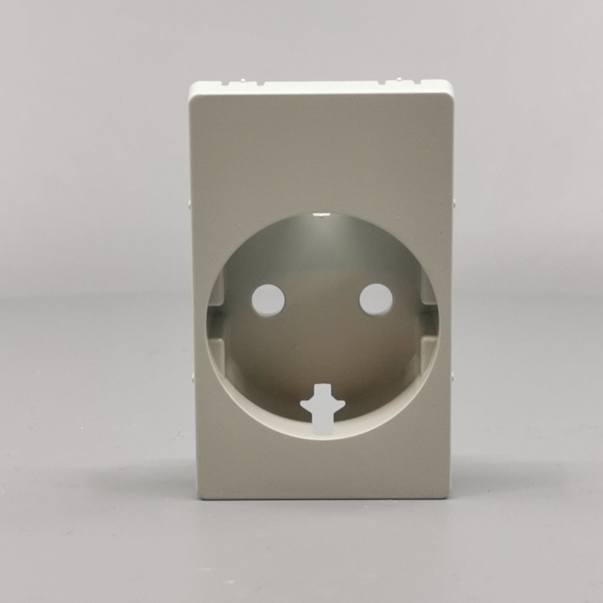 Lysegrå afdækning til 1½ modul LK Fuga stikkontakt med sidejord, også kaldet schuko. Passer til 1017060508.