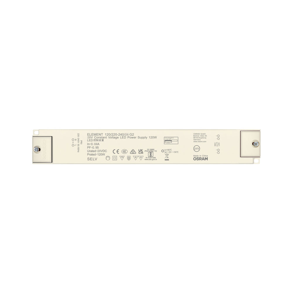 Osram 120W strømforsyning - 12V DC, 10A, IP20, indendørs brug, hvid - Effektiv og pålidelig strømforsyning til diverse elektroniske enheder.