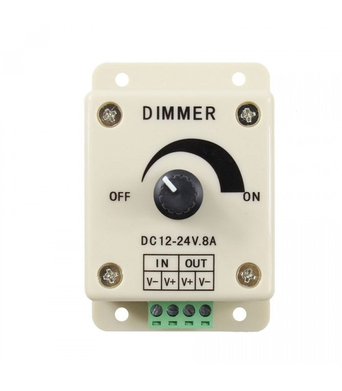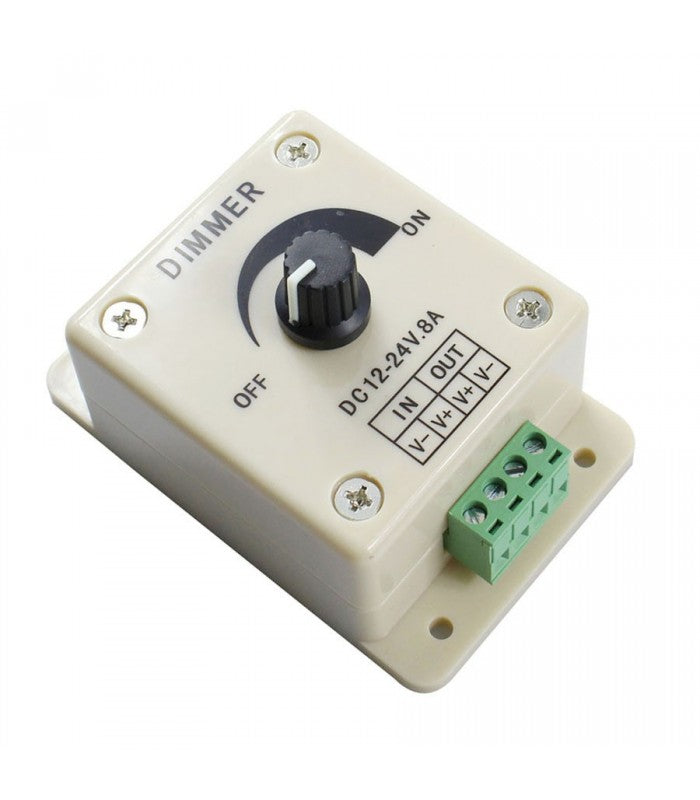 impel dæmper til 12V og 24V enkelt farvede LED strips.Udgangseffekt 12V DC: 96W.Udgangseffekt 24V DC: 192W.PWM dæmper.1 udgangskanal.Max 8A.Trinløs justering af lysstyrke.Kan slukke helt, ved at dreje helt i nul.?? Forsynes med 12VKan dæmpes.Dimensioner: 60 x 30 x 90 mm.IP20 - Ikke modstandsdygtig over for vand Dæmpbar ja Højde30 mm. Bredde60 mm. Dybde90 mm. MaterialeABS PlastikEffekt og spænding Spænding12V SpændingsintervalDC: 12-24v.