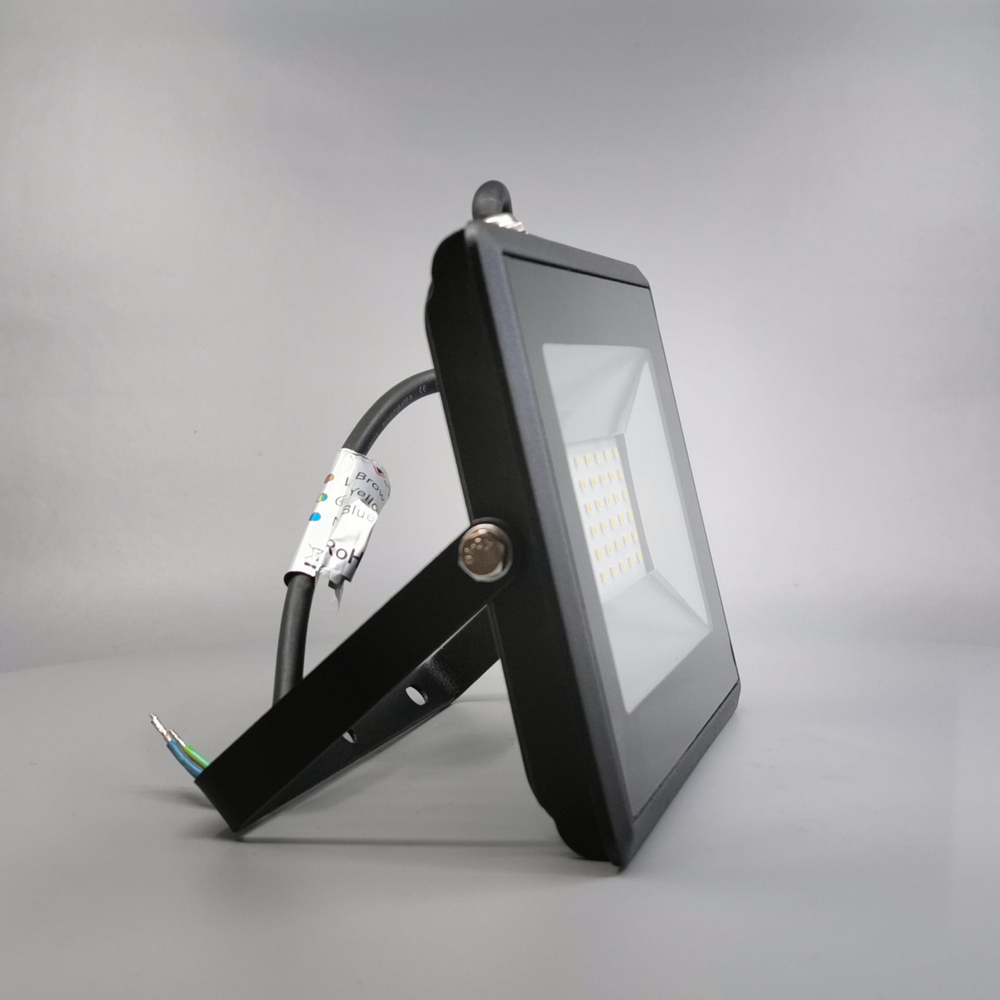 LED projektøren kommer med 10 cm. fastmonteret ledning.