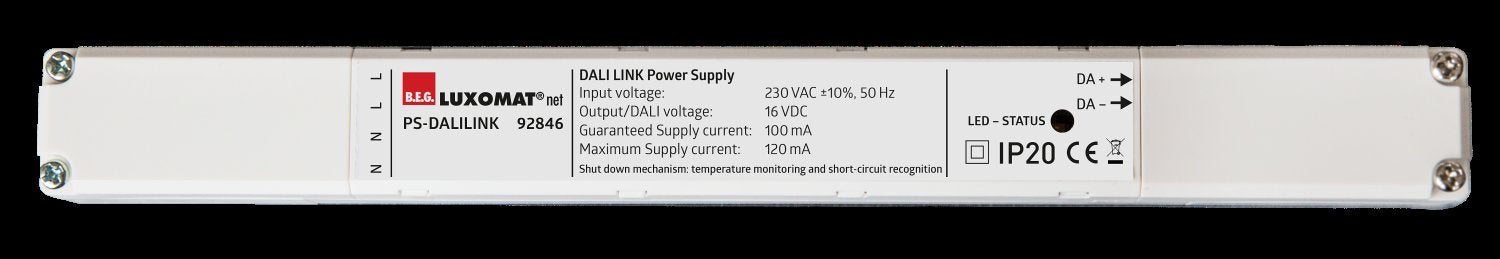 B.E.G. PS-DALILINK-DE DALI-strømforsyning. Produktinformation DALI strømforsyning til B.E.G. DALI LINK enkeltrumsløsning til installation i nedsænket lofter. Parameter indstilling af Dali link løsningen sker via Bluet... Se mere