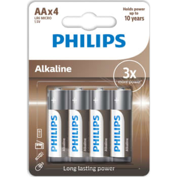 PHILIPS Tech alkaline batterier i størrelse AA LR6 kommer i en pakke med 4 stk. Disse batterier kan bruges i en bred vifte af kompatible elektroniske enheder. SKU-nummeret for produktet er 881081301.