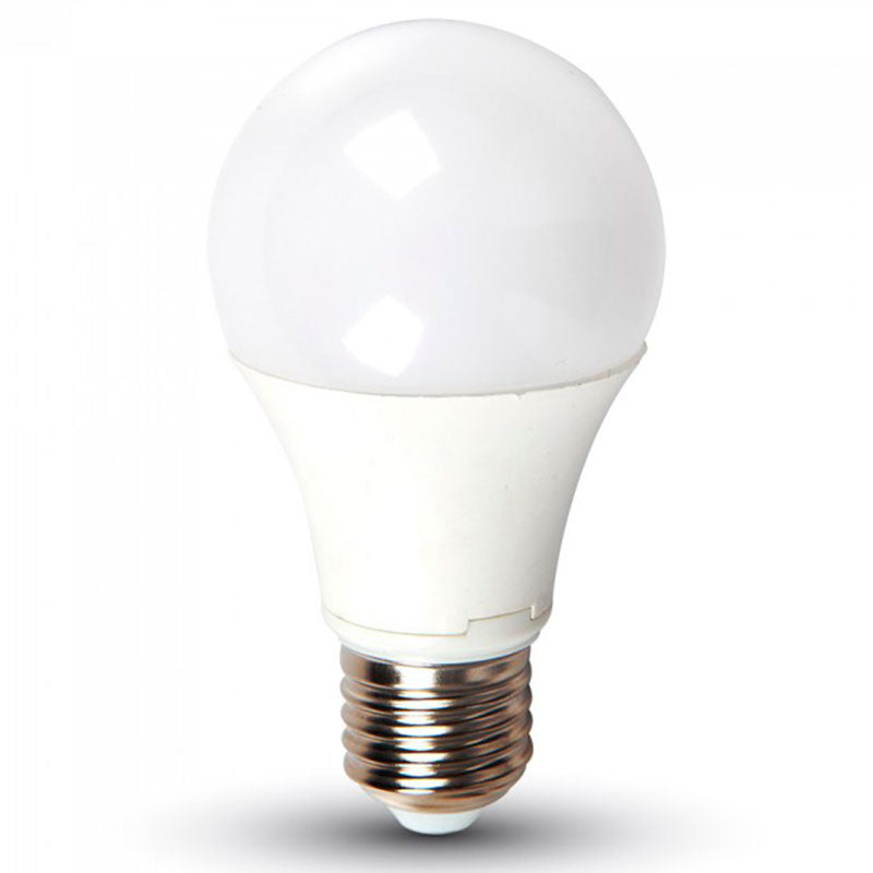 9W LED pære med E27 fatning, også tit kaldet stor fatning. Pæren kan erstatte en gammeldags 60W halogenpære. æren har en kelvin værdi på 2700, hvilket giver et behageligt varmt hvidt lys. Forventet levetid på 20.000 timer.