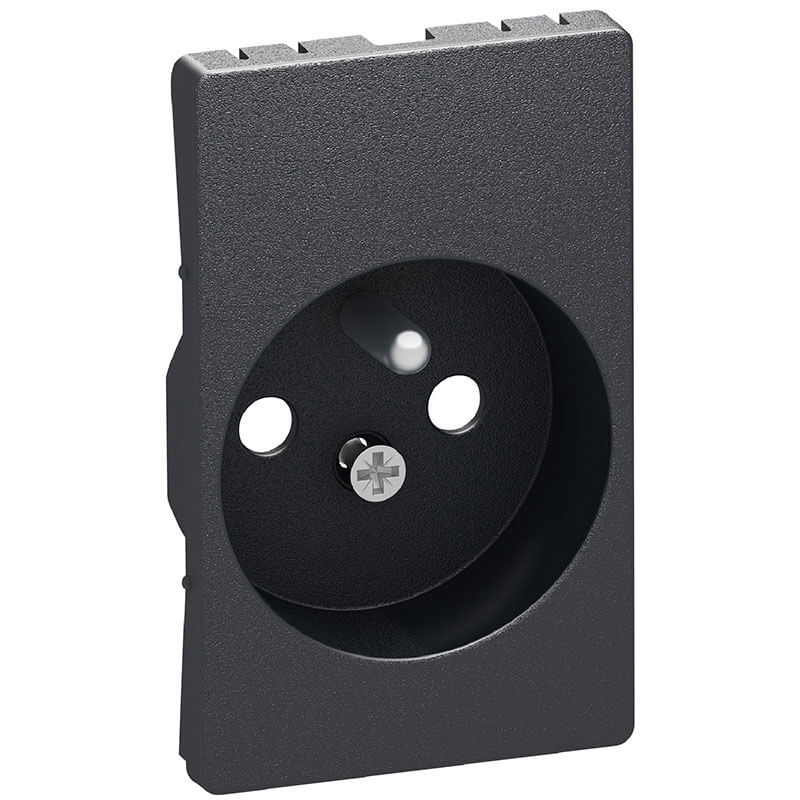 Koksgrå afdækning til 2-pol Fuga stikkontakt med pindjord. Denne afdækning passer til Fuga-serien og giver et stilrent udseende til dit hjem eller kontor.