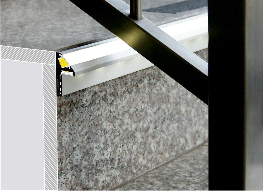 Alu skinne 2m til LED bånd (fås også i 1m 510725)Skinne for montering på forkant af trappetrinKan monteres både horisontalt eller vertikaltMaks. bredde på LED bånd = 10mmKun til indendørs brug Tilbehør:Afdækning C opal 2m 510712, til montering nedenunder profil (1m 510711)Afdækning C alu plade 2m 510729, til montering på forsiden profil (1m 510728)Afdækning skridsikker transparent 2m 510731, til montering på toppen (1m 510730)Endestykke med kabeludgang (sæt á 2 stk) 510727
