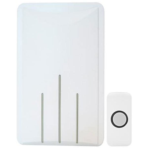 Dørklokkesæt i elegant hvid og hvidt dørtryk. Leveres med 8 meter ledning. Mekanisk ringelyd. Med indbygget transformer. 230V tilslutning. Batterier: 2. stk. LR14 Alkaline C. Mål (HxBxD): Klokk... Se mere