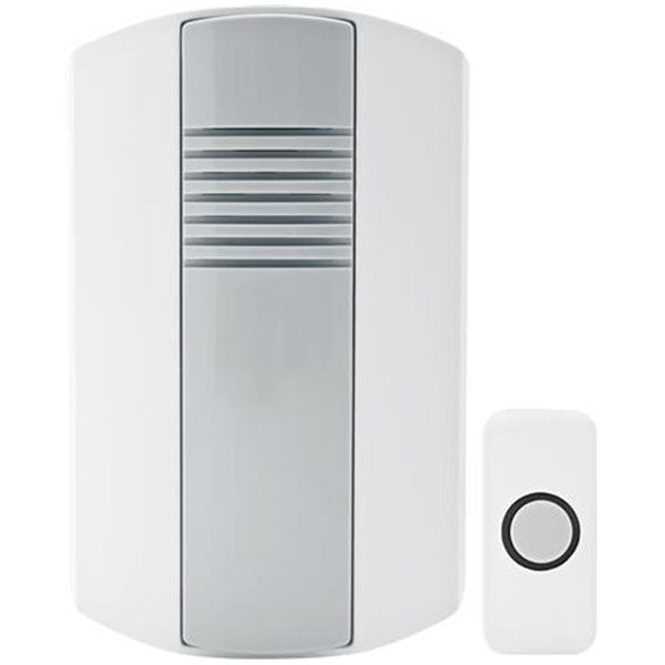 Dørklokkesæt i elegant hvid og hvidt dørtryk. Leveres med 5 meter ledning. Vælg mellem 8 forskellige elektroniske ringetoner. Batterier: 2. stk. LR6 Alkaline AA. Mål (HxBxD): Klokke: 150x95x30 mm... Se mere