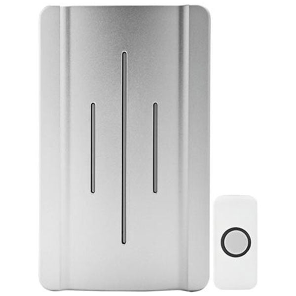 Dørklokkesæt i elegant stållook og hvidt dørtryk. Leveres med 8 meter ledning. Mekanisk ringelyd. Tilslutning med transformer eller batterier. Trasformer: 8V-12V - 1A og beregnet til dørrklok... Se mere