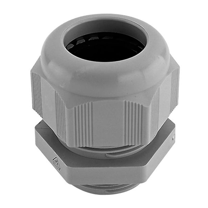 Forskruning i polyamid med et M32 gevind. Passer til kabler med en diameter mellem 15 og 21 mm.