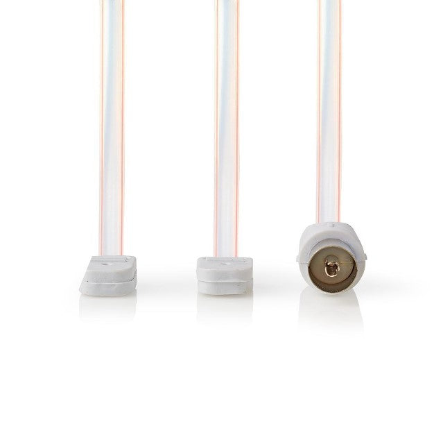 Indendørs FM dipol radioantenne med coax stik. Tekniske detaljer: Ledningslængde: Ca. 1,8m Dipol længde: Hver ca. 80cm Stikforbindelse: Coax hun (IEC)