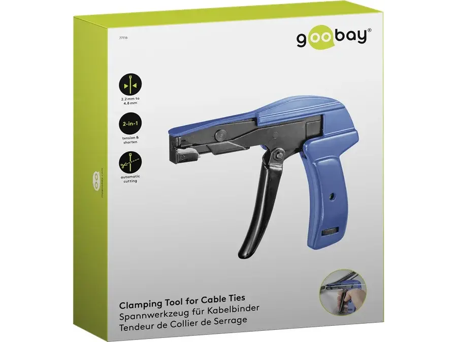 2-i-1-værktøj til hurtig opstramning og afklipning af kabelbindere i blot ét trin. Praktisk værktøj til elektrikere, industri og håndværk.