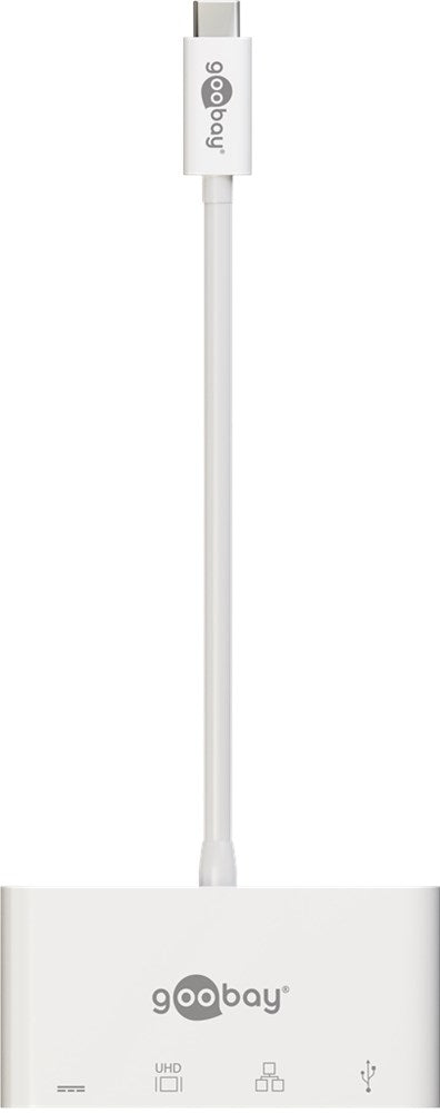 The Multiport Adapter routes signals from USB-C to HDMI, Ethernet and USB devices. Super-fast network connection via built-in Ethernet port (Gigabit) with a transfer rate of 5 Gbit/s Additionally with USB A 3.0 socket for fast data transfer and USB-C port for charging. USB Power Delivery technology enables charging of end devices with a voltage of up to 60 W. Thus, for example, large notebooks, hubs or docking stations can be charged without problems. Resolutions up to 4K*2k@30Hz are supported.