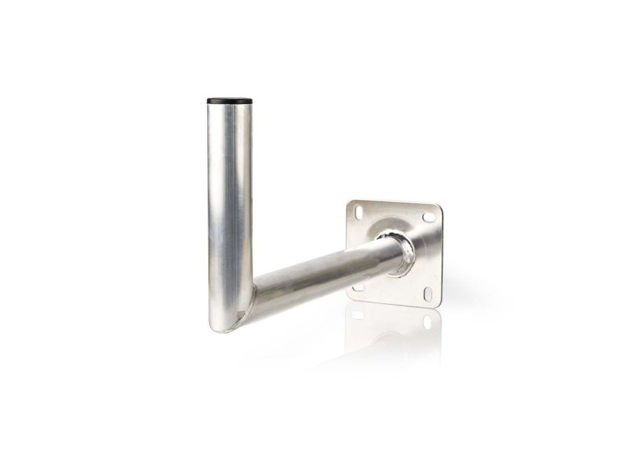 L-shaped, aluminium wall mount with a blanking cap to mount satellite dishes and/or aerials firmly to facades, walls or chimneys. Four mounting holes make sure that the wall mount stays properly secured to the surface, whilst carrying its heavy load.