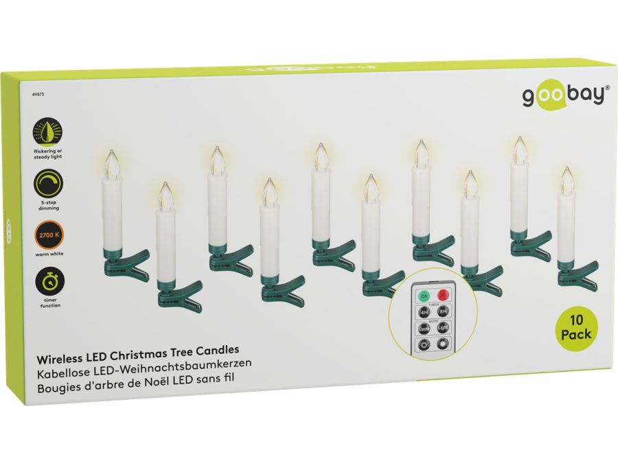 - Set of 10 white, wireless LED candles (each 1.5 x 10 cm) for festive Christmas lighting