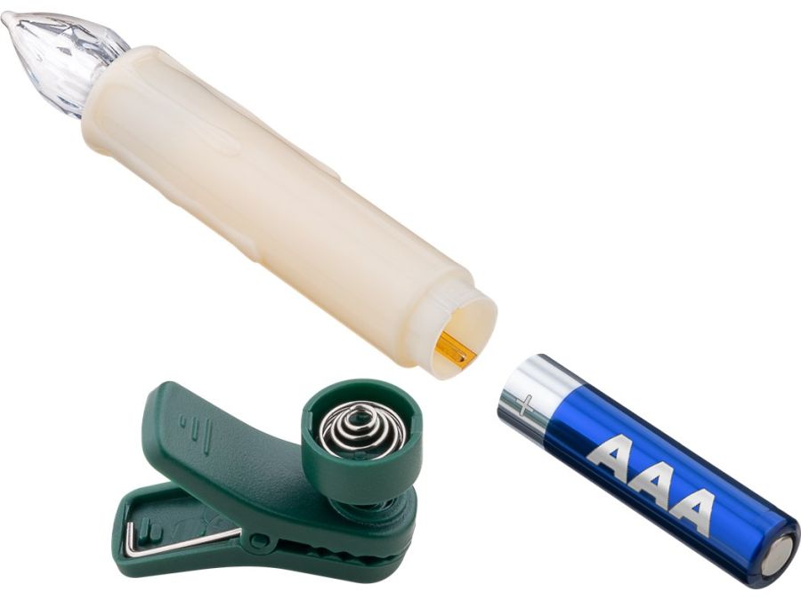 - Practical green alligator clips and a ball joint make it easier to attach the candles straight to the Christmas tree
