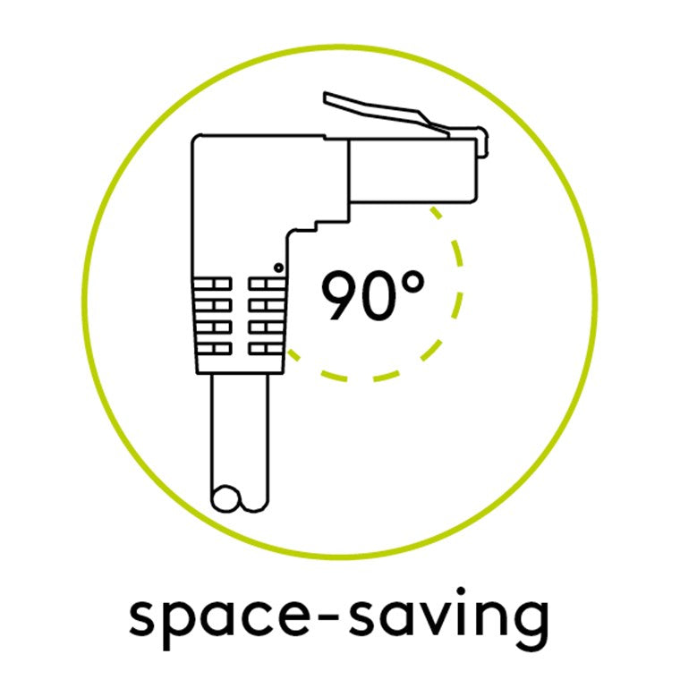 - RJ45 plug straight to RJ45 plug angled, ideal solution for minimal space