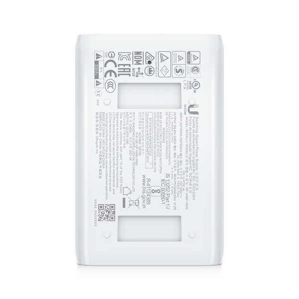 Compact adapter capable of delivering 30W of PoE+ to the U6 LR, U6 Pro, and other 802.3at devices. Internal power supply