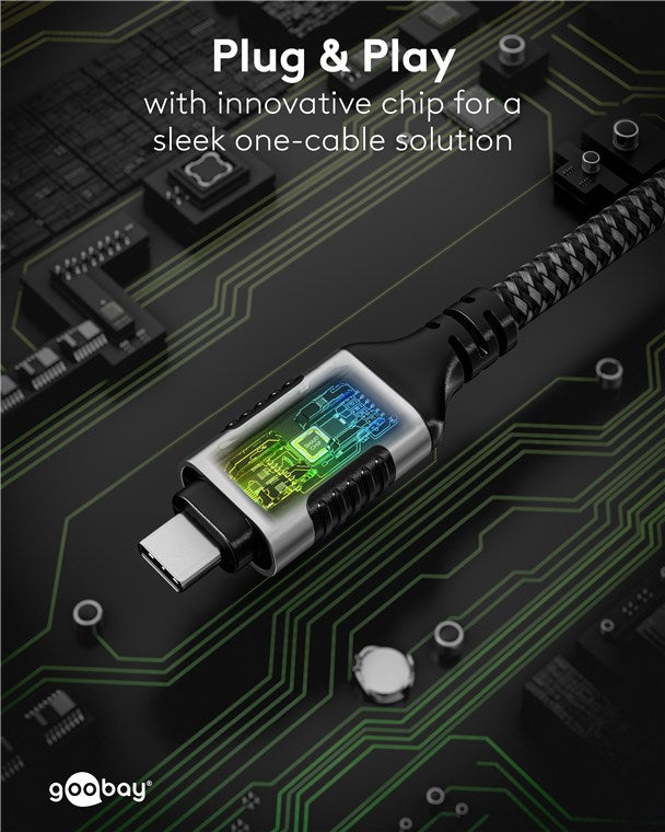 - USB-kablets flettede, slidstærke tekstilmateriale har en behagelig fornemmelse og er skånsom mod følsomme overflader.