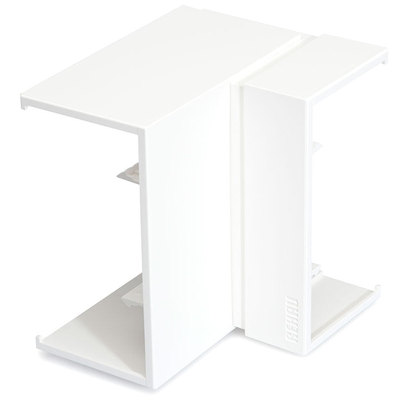 Installationskanal af kunststof. Løser mange installationsproblemer. Moderne softline-design. Montagefordele som bundlokning og DIN-skinne i bunden af kanalen.