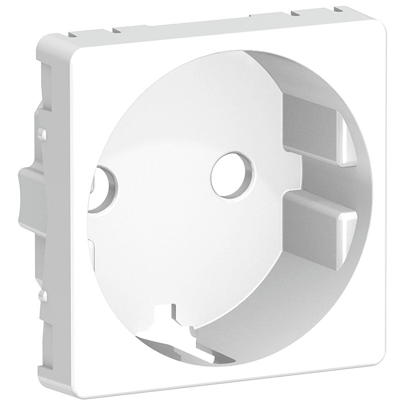 Hvid afdækning til 1 modul LK Fuga stikkontakt med sidejord, også kendt som schuko. Denne afdækning er designet til at give et stilrent og funktionelt udseende i dit hjem eller på arbejdspladsen.