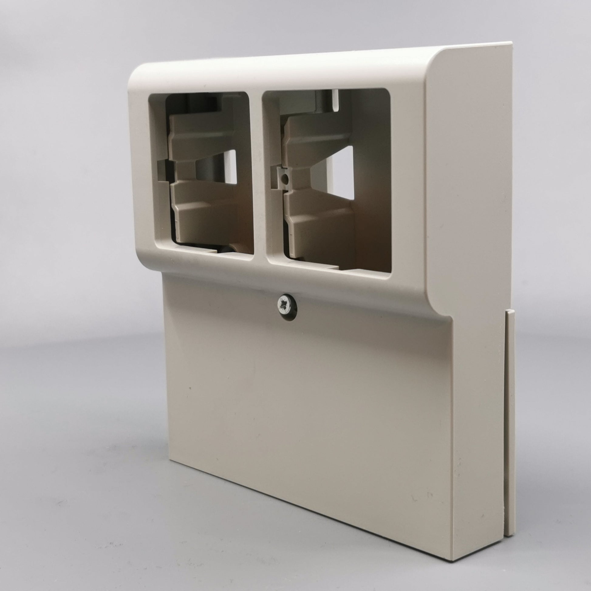 Panelunderlag softline til 2 modul med sprosse i lysegrå farve er til udvendig brug i fodlister. Dette produkt leveres komplet med dæk- og bagplade samt en integreret afdækning med ramme, hvilket g... Se mere