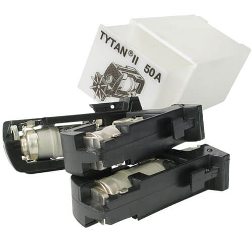 3 stk. sikringeskuffer med tilhørende 50A sikringer til Servodan Tytan II gruppeafbryder. Leveres i praktisk holder, til montage på DIN-skinne. Amp: 50AType: 61-918