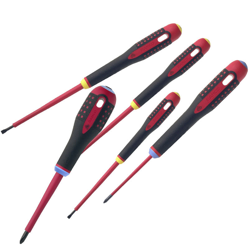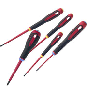 Ergonomisk 3-komponentgreb. Godkendt op til 1000-V-arbejde. Til Pozidriv- og lige kærv-skruer. Sæt indeholdende 5 stk. skruetrækkerePZ1 x 80 PZ x 100lige kærv 0,5×3,0x100 0,8×4,0x100 1,0×5,5x125.