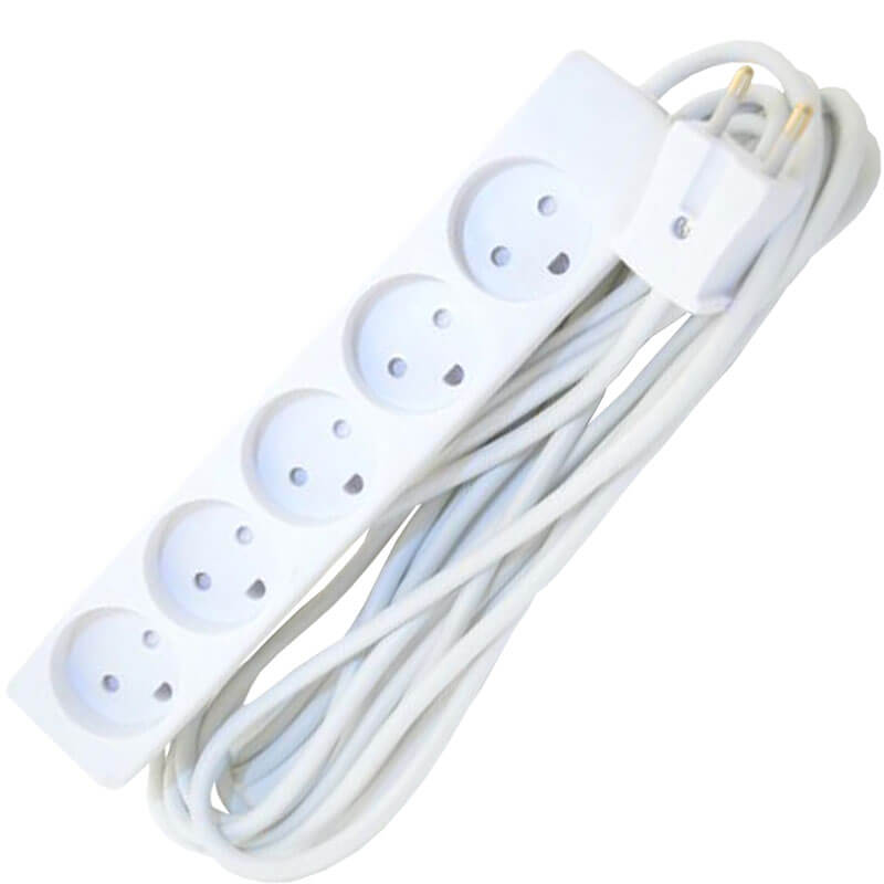 Stikdåse børnesikret 5-vejs 5m hvid