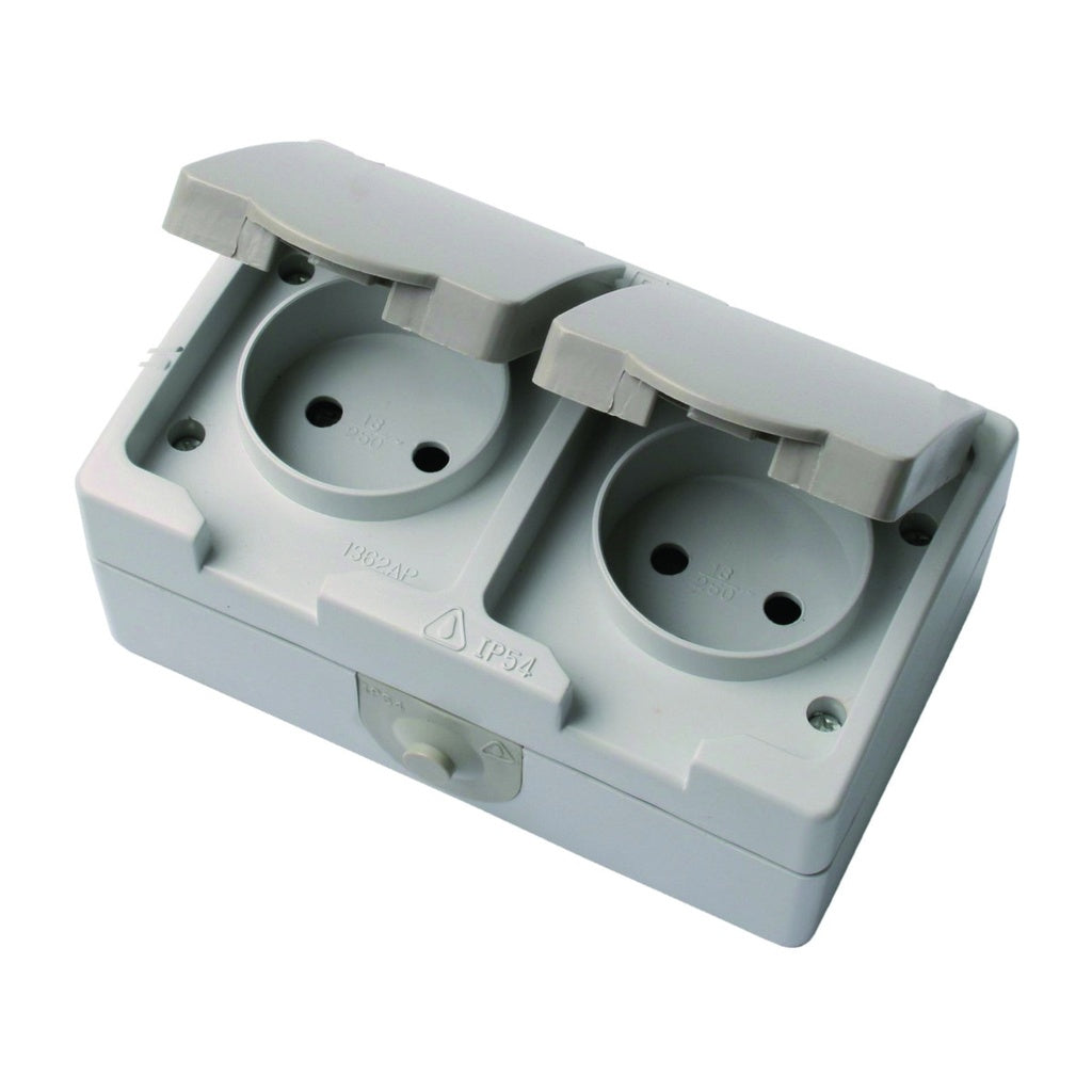 Dobbelt stikkontakt m/dansk jord. IP54, 13A/250V.