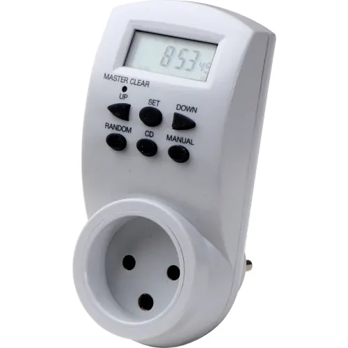 Produkt beskrivelse:Digitalt tænd og sluk-ur med 10 ON/OFF programmer, 16 valgmuligheder af dage eller blokke af dage.16 valgmuligheder af dage nedtællingsfunktion, tilfældighedsprogram mellem kl. 18.00 og kl. 06.00, sommer/vinter-tid omskifter, udskifteligt back-up batteri og manuel afbryder.Korteste koblingstid er 1 min., max. belastning er 16A eller 3680W AnvendelseEt tænd og sluk-ur kan være en glimrende tyverisikring. En af de få ting tyve har respekt for er lys. Med et tænd og sluk-ur, der kan indstilles til at tænde på vilkårlige tidspunkter af døgnet, kan du gøre tyvene usikre på, om der er nogen hjemme.Dette tænd og sluk-ur er af høj kvalitet med brugervenlige funktioner til sikkerhed og komfort. Andre anvendelsesmuligheder :- Motorvarmeren til bilen- pumpen til springvandet i haven- affugteren i kælderen osv.,det er alle steder hvor det er praktisk og behageligt, hvis strømmen bliver tændt og slukket automatisk. Tekniske dataSpænding: 230V3680WBelastning: 16AStandby forbrug: 2,8WKapslingsklasse: IP20Stiktype: DK hanstik med jord og børnesikringBatteri: Indbygget back-up batteri ikke udskiftelig NiMH 1,2V >100 timerMål: 71x130x81 mmFarve: perlehvid med grå knapper.