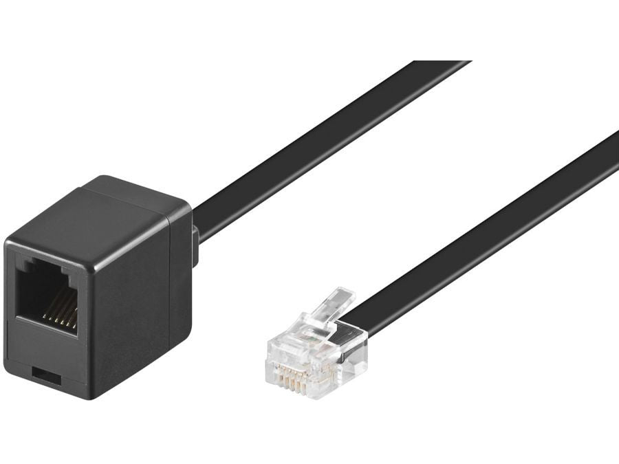 Telefon forlængerledning - RJ12(6P6C) han/hun, Sort (3m)