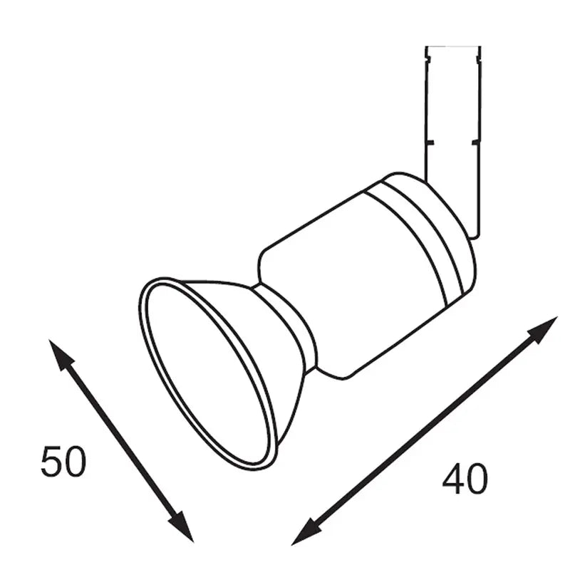 Spotlight til montering på 1 faset SQUARE skinne Lyskilde: 50W PAR16 GU10 IP klasse: IP20 Godkendt til: Indendørs LEVERES UDEN LYSKILDE