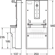 For montage udvendig på væg. Kan sammenbygges vandret og lodret med gruppetavle type UG. UG18 svarer i dimension til UM.