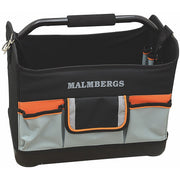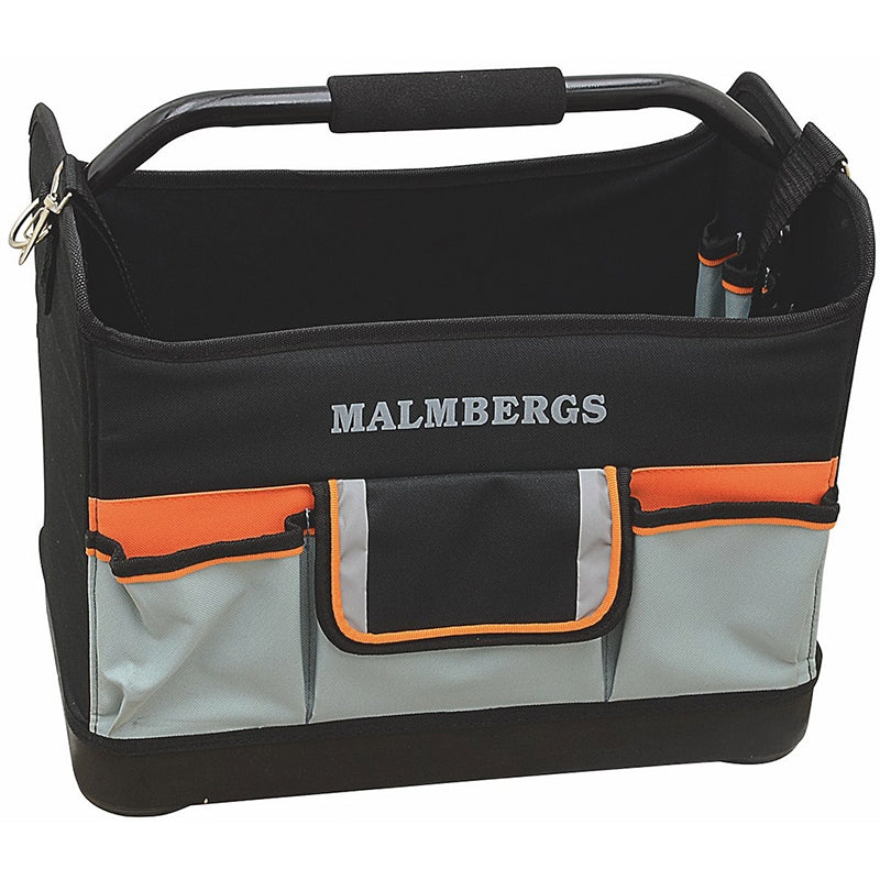 Værktøjstaske i kraftig polyester og hård plastikbund. 5 inderlommer, 10 værktøjslommer og 6 yderlommer. Blødt bærehåndtag og skulderrem.